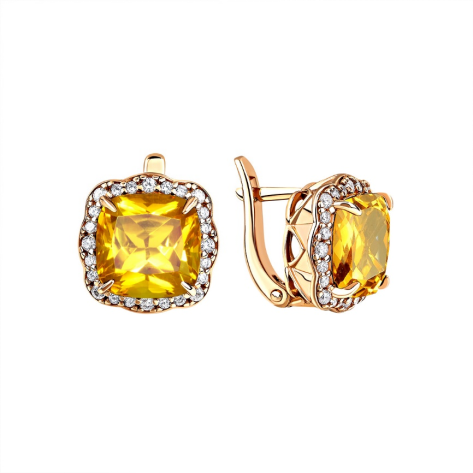 Серьги из серебра с цитринами и фианитами из коллекции Городская роскошь (Арт. 2320111964л)