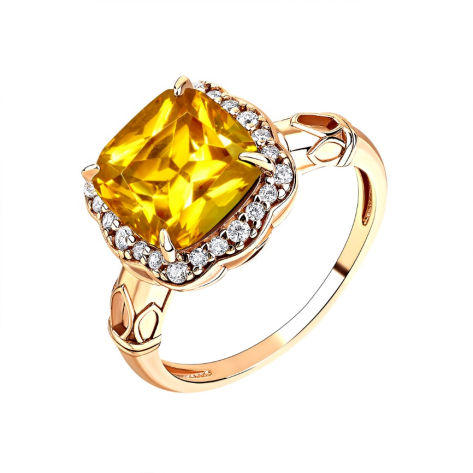 Кольцо из серебра с цитрином и фианитами из коллекции Городская роскошь (Арт. 1320111964л)