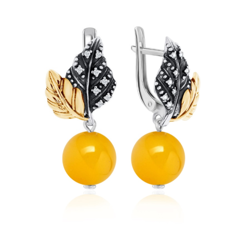 Серьги из серебра с янтарем из коллекции Уральские самоцветы (Арт. 2320481994)