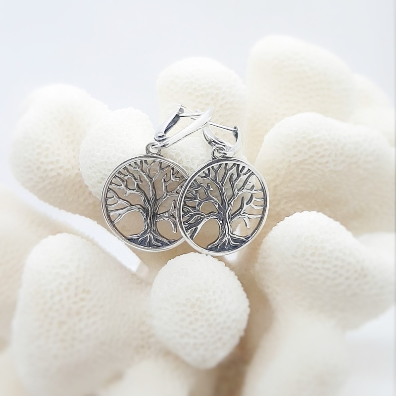 Серьги из серебра с агатом Древо жизни КУПИТЬ
