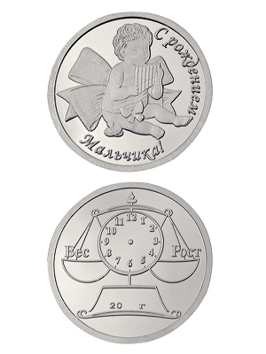 Серебряная монета сувенир "С рождением мальчика"