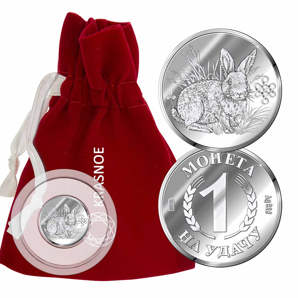 Серебряная монета с изображением Кролика. Символ года.