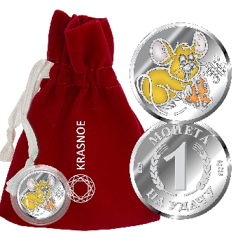 Серебряная монета с эмалью с изображением Мыши (Крысы). Символ года