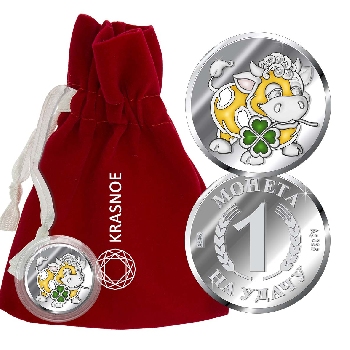 Серебряная монета с эмалью с изображением Быка. Символ года. Бык был покровителем 1901, 1913, 1925, 1937, 1949, 1961, 1973, 1985, 1997, 2009 и 2021 года. В следующий раз он станет символом 2033 и 2045 годов.
