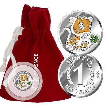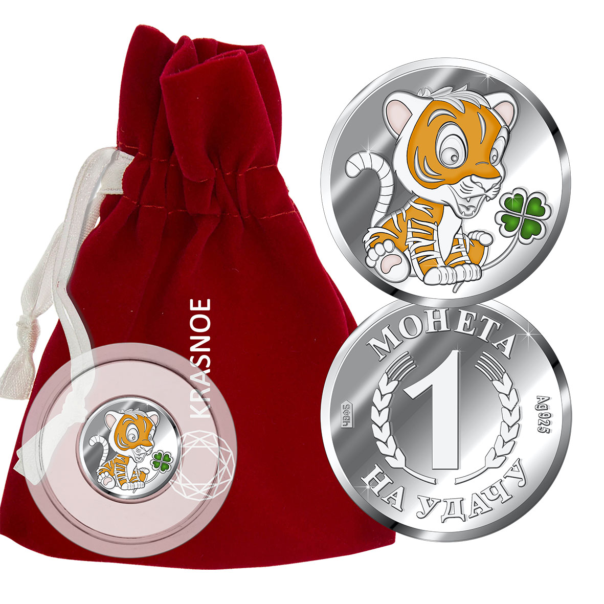 Серебряная монета "На удачу" станет приятным сувениром для тех кто родился в этот год, а так же на любой другой праздник.