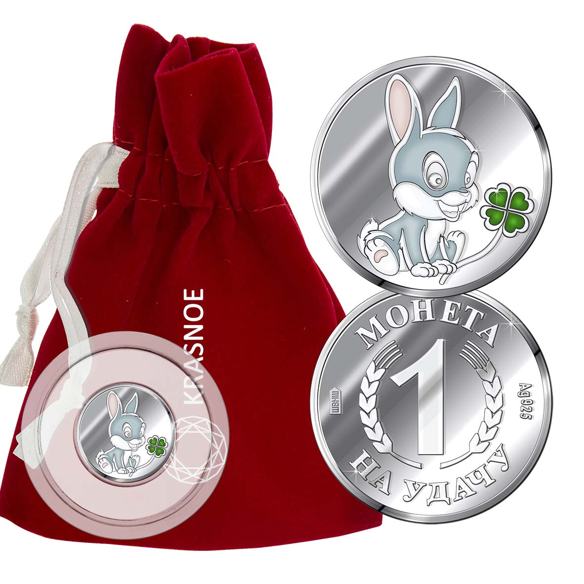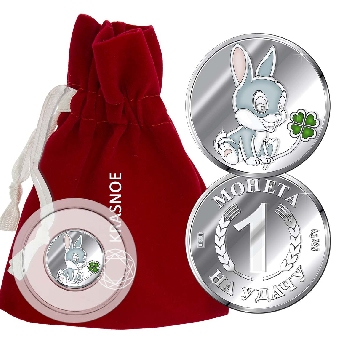 Серебряная монета с эмалью с изображением Кролика. Символ года.