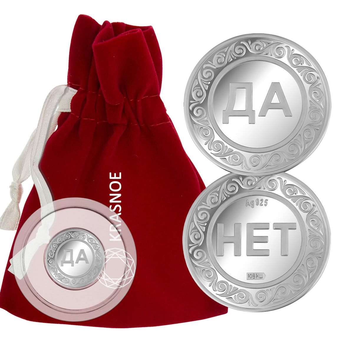 Серебряная монета на удачу "Да/Нет" — сувенир для всех из серебра 925 пробы.