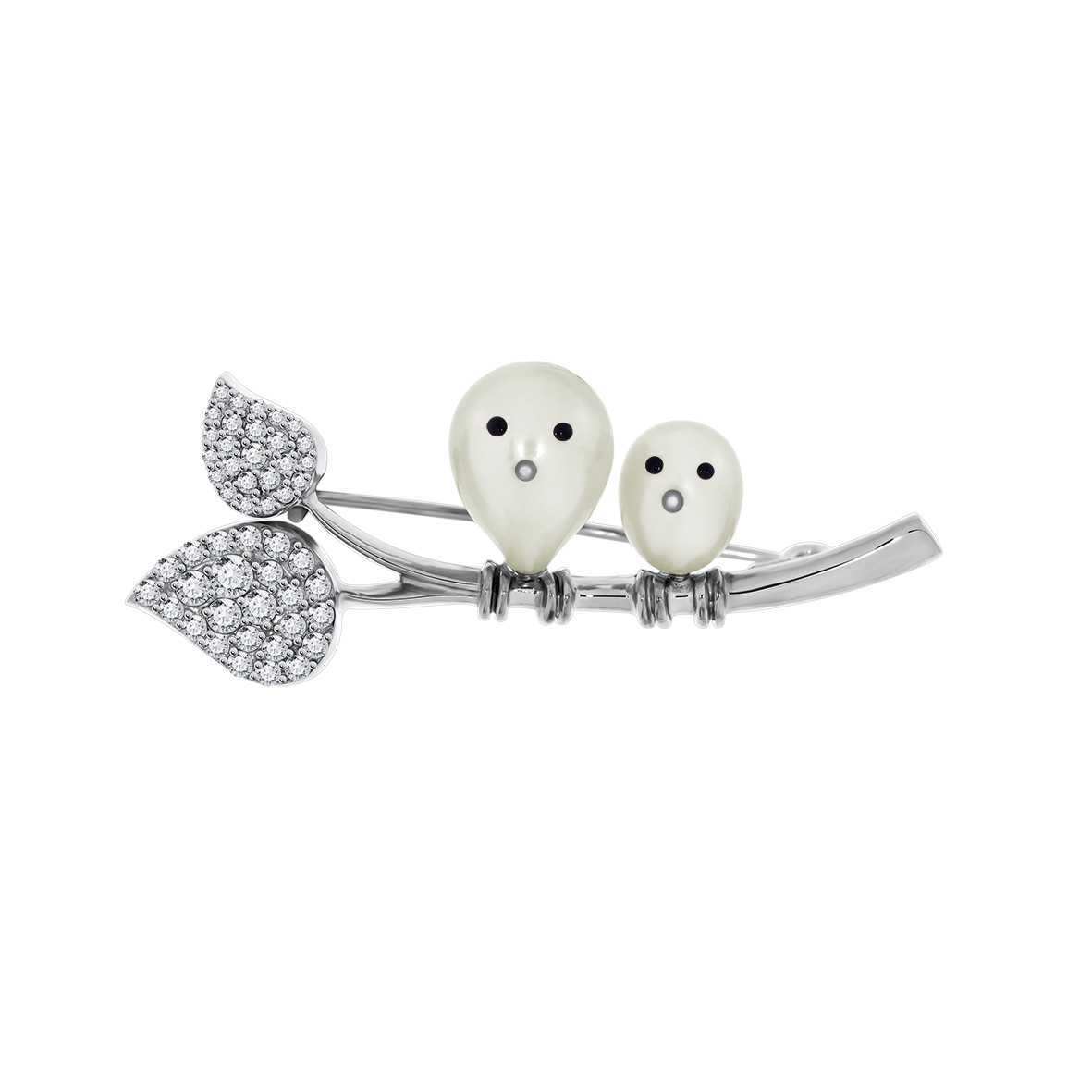 Брошь для женщин из серебра 925 пробы с эмалью,жемчугами,,фианитами артикул 6R024055 от компании KRASNOE