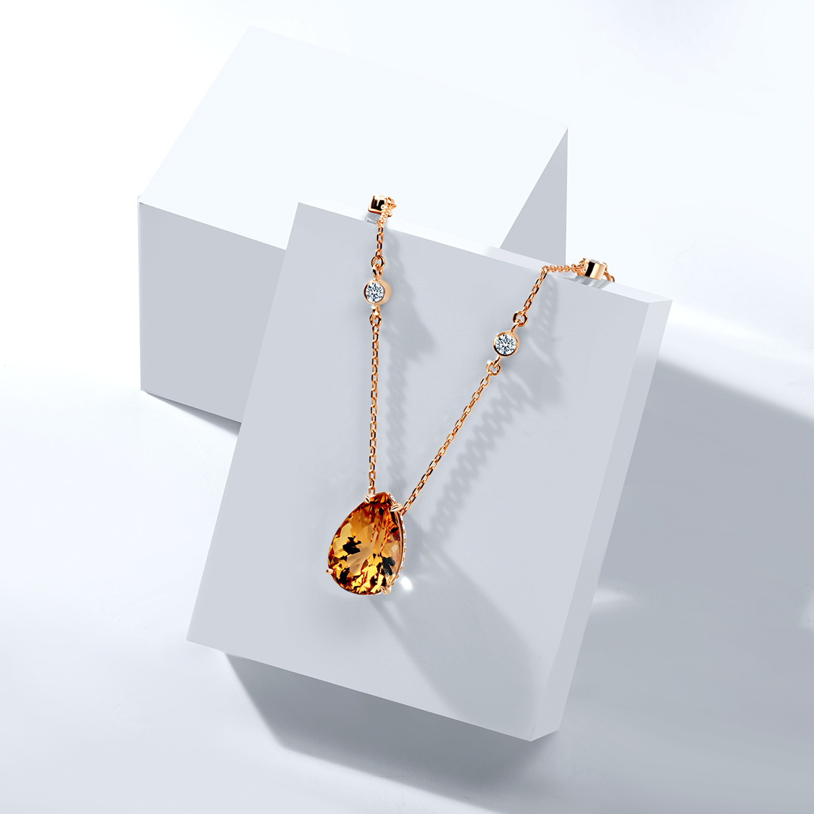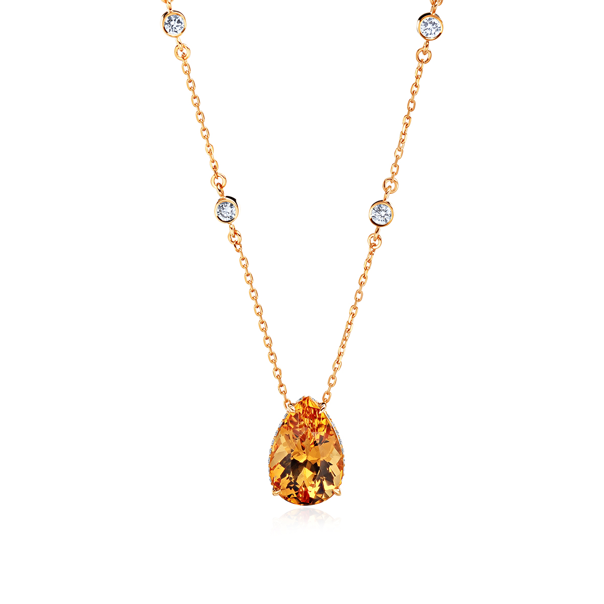 Колье для женщин из золота 585 пробы с топазом Империал и бриллиантом от компании KRASNOE