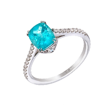 Турмалин Параиба - абсолютно роскошен и самодостаточен сам по себе. Но мы решили внести легкую оригинальность и инкрустировали нижний и верхний торец каста бриллинтами, не обрамляя Турмалин Параиба бриллиантами по всему периметру. Получилось изысканно и ненавязчиво необычно