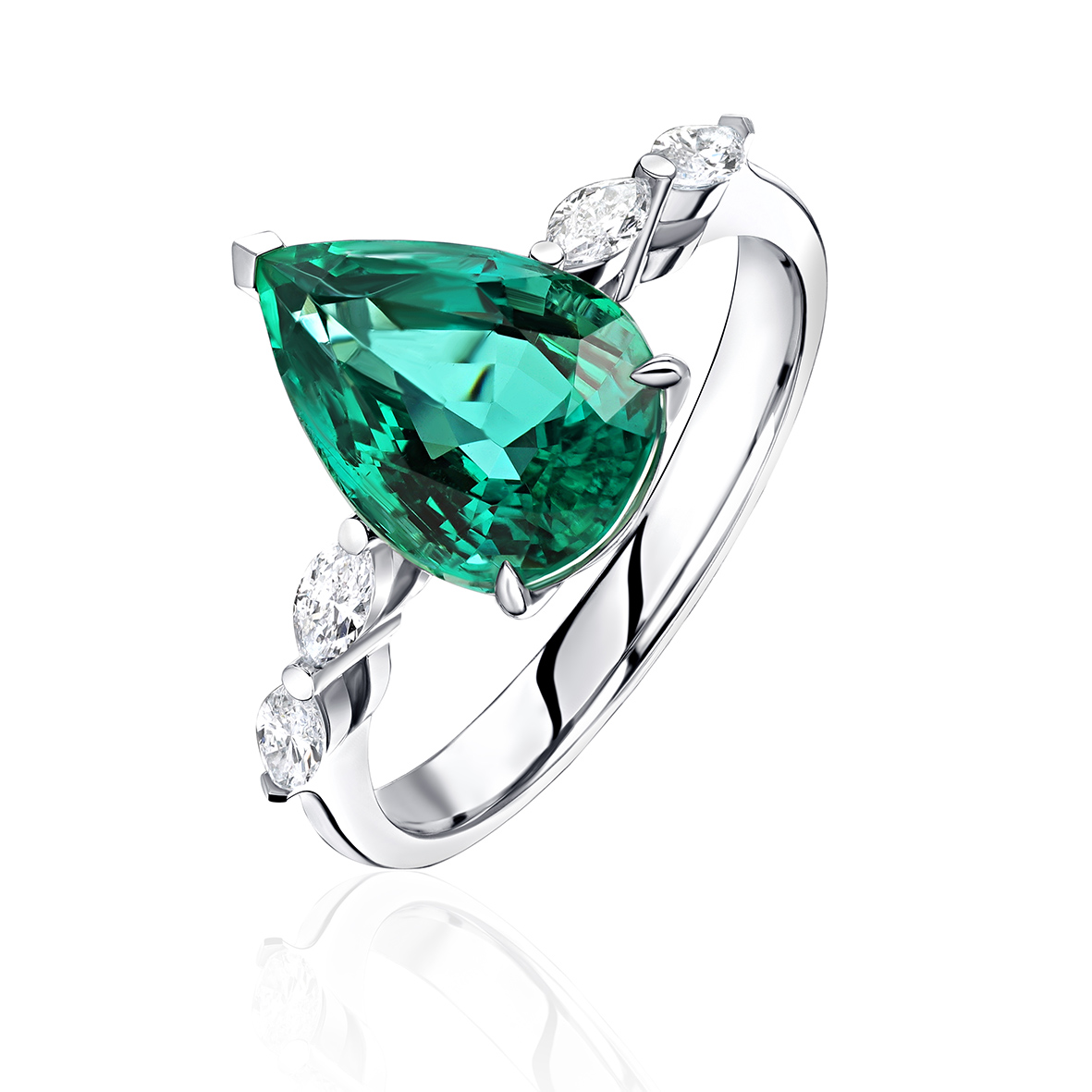 Кольцо для женщин из золота 750 пробы с турмалином Параиба и бриллиантами от компании KRASNOE