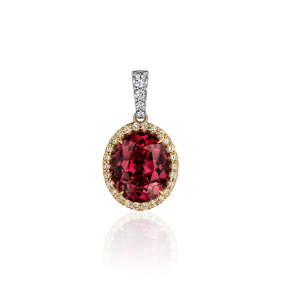 Данная небольшая подвеска, выполненная из белого золота 750 пробы и инкрустированная бриллиантом огранки кушон и россыпью мелких камней, гипнотизирует и приковывает внимание.