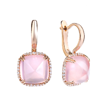 Почти плюшевый комплект с кварцем и бриллиантами. Огранка sugarloaf в сочетании с ярко розовым цветом камней создаёт эффект плюшевости, «мягких подушечек».