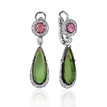 Сочетайте контрасты, будьте яркой. Розовый, зеленый и холодный белый - вызывающее и вместе с тем столько гармоничное сочетание, благодаря кропотливой работе наших дизайнеров и ювелиров. Каплевидные турмалины подчеркнут изящность шеи и линии подбородка, розовые турмалины создадут необходимые акценты на мочках ушей, выделяя серьги на фоне волос, а богатство бриллиантов подчеркнет Ваш особый статус и безупречный вкус