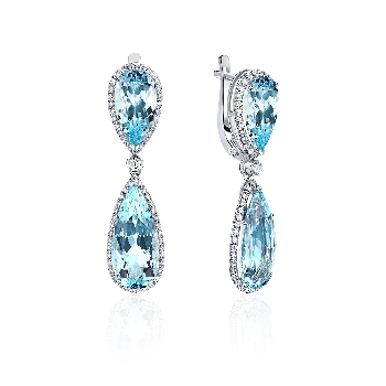 Серьги для женщин из золота 750 пробы с аквамаринами,бриллиантами артикул 2740092622 от компании KRASNOE