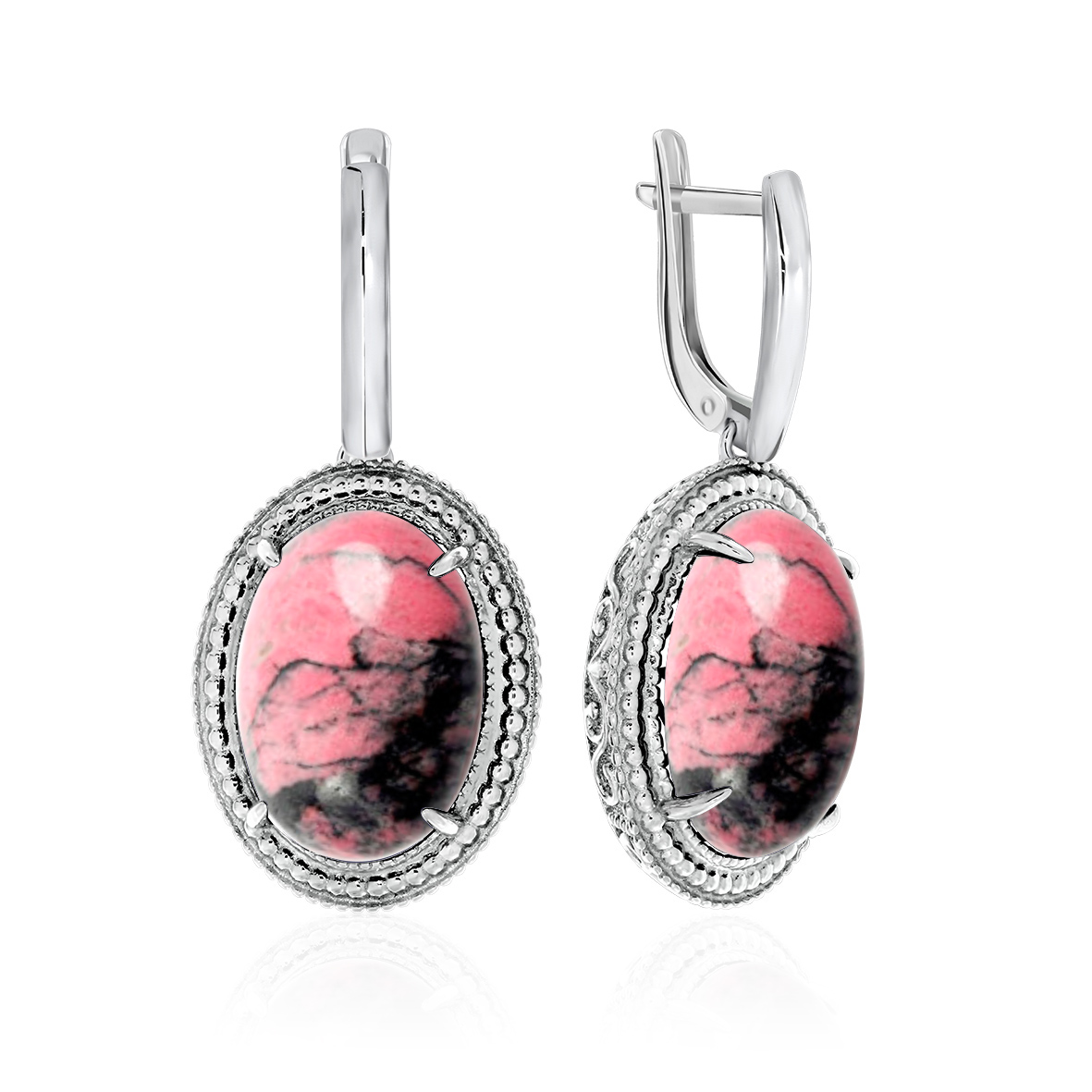 Серьги для женщин из серебра 925 пробы с родонитами из коллекции Династия артикул 2310450963 от компании KRASNOE
