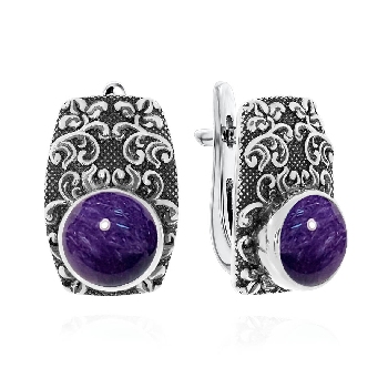 Серьги для женщин из серебра 925 пробы с чароитами из коллекции Boyarynia артикул 2310461366 от компании KRASNOE