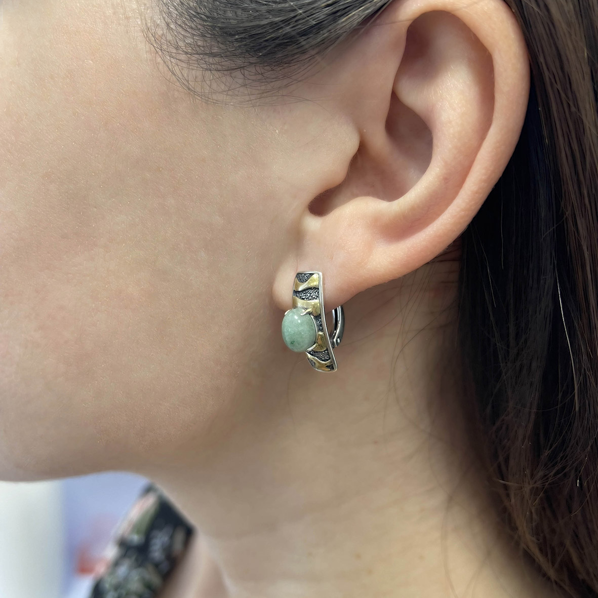 Серьги для женщин из серебра 925 пробы с авантюринами из коллекции Игра фактур артикул 2317361758-1-60 от компании KRASNOE