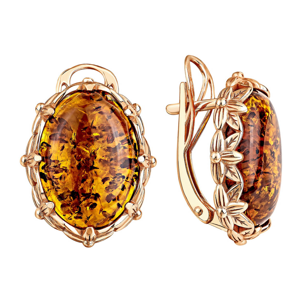 Серьги для женщин из серебра 925 пробы с янтарём из коллекции Flowers артикул 2320485095 от компании KRASNOE