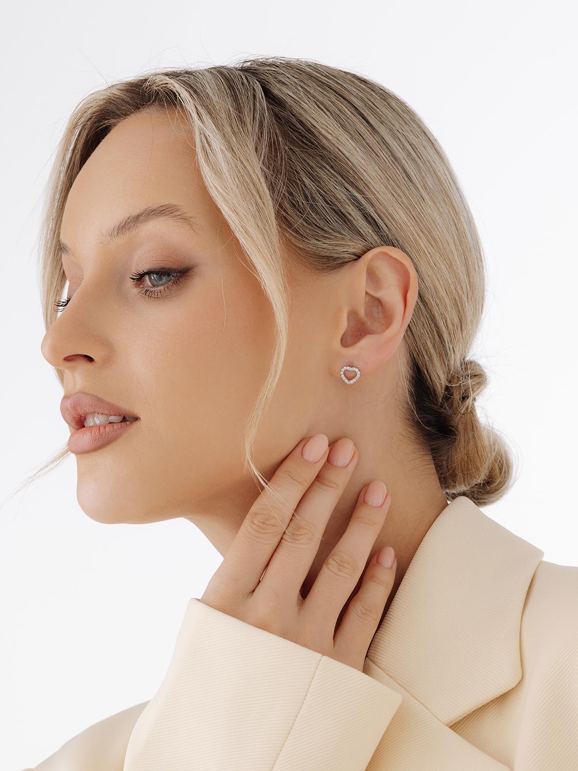 Пусеты для женщин из серебра 925 пробы с фианитами из коллекции Love артикул 2340204845л от компании KRASNOE