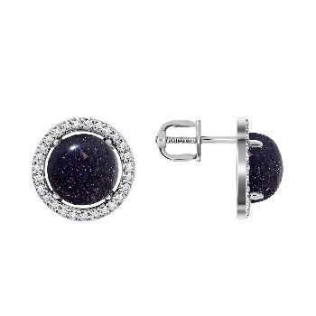 Пусеты для женщин из серебра 925 пробы с синтетическими авантюринами,фианитами из коллекции Уральские самоцветы артикул 2340362055-8 от компании KRASNOE
