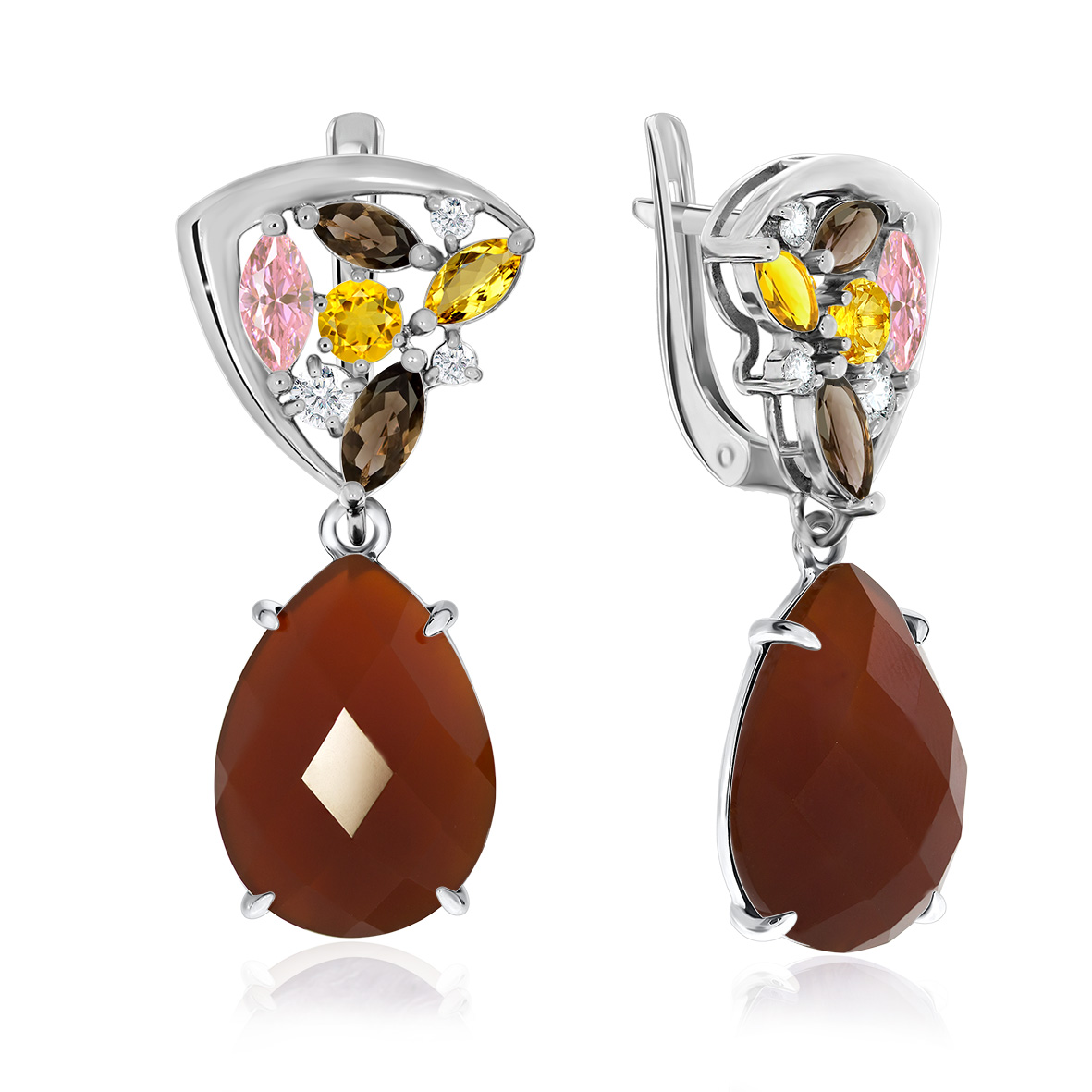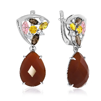 Серьги для женщин из серебра 925 пробы с агатами,ситаллами,,фианитами из коллекции Уральские самоцветы артикул 2340390885-40 от компании KRASNOE
