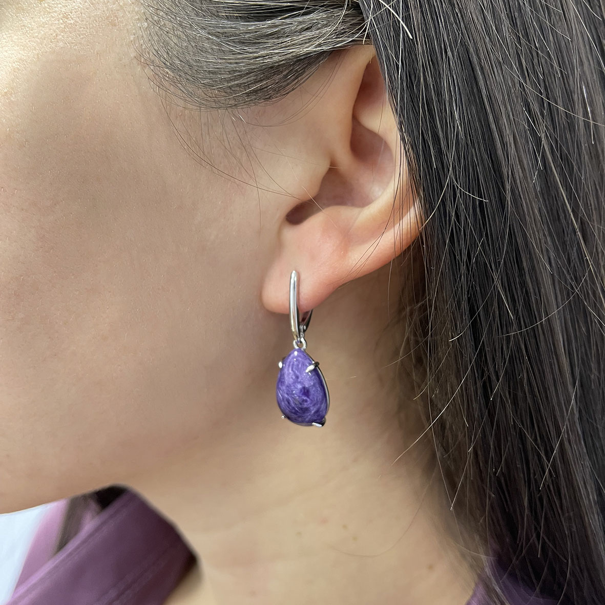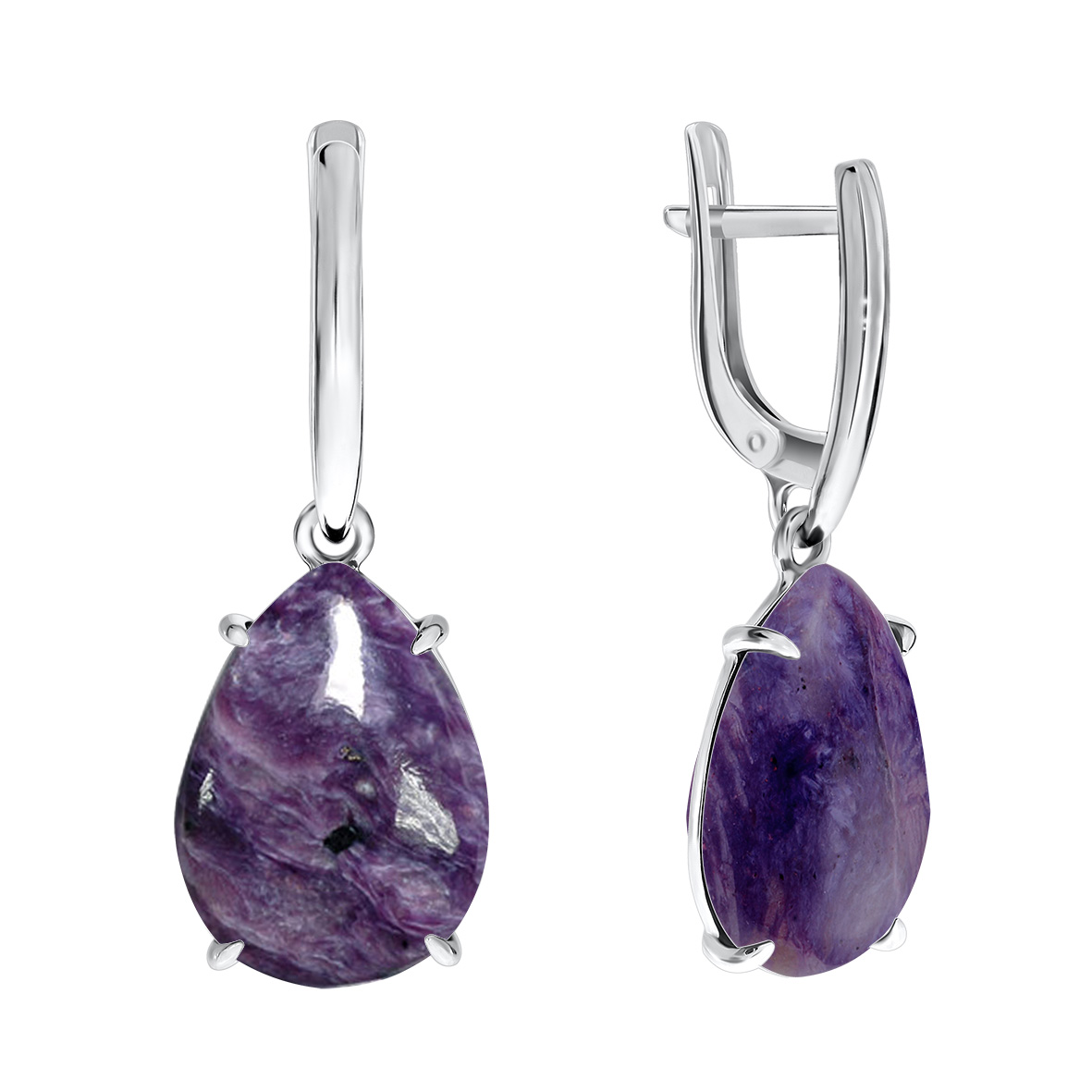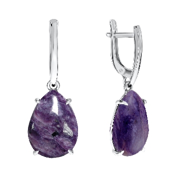 Серьги для женщин из серебра 925 пробы с чароитами из коллекции Уральские самоцветы артикул 2340460500 от компании KRASNOE