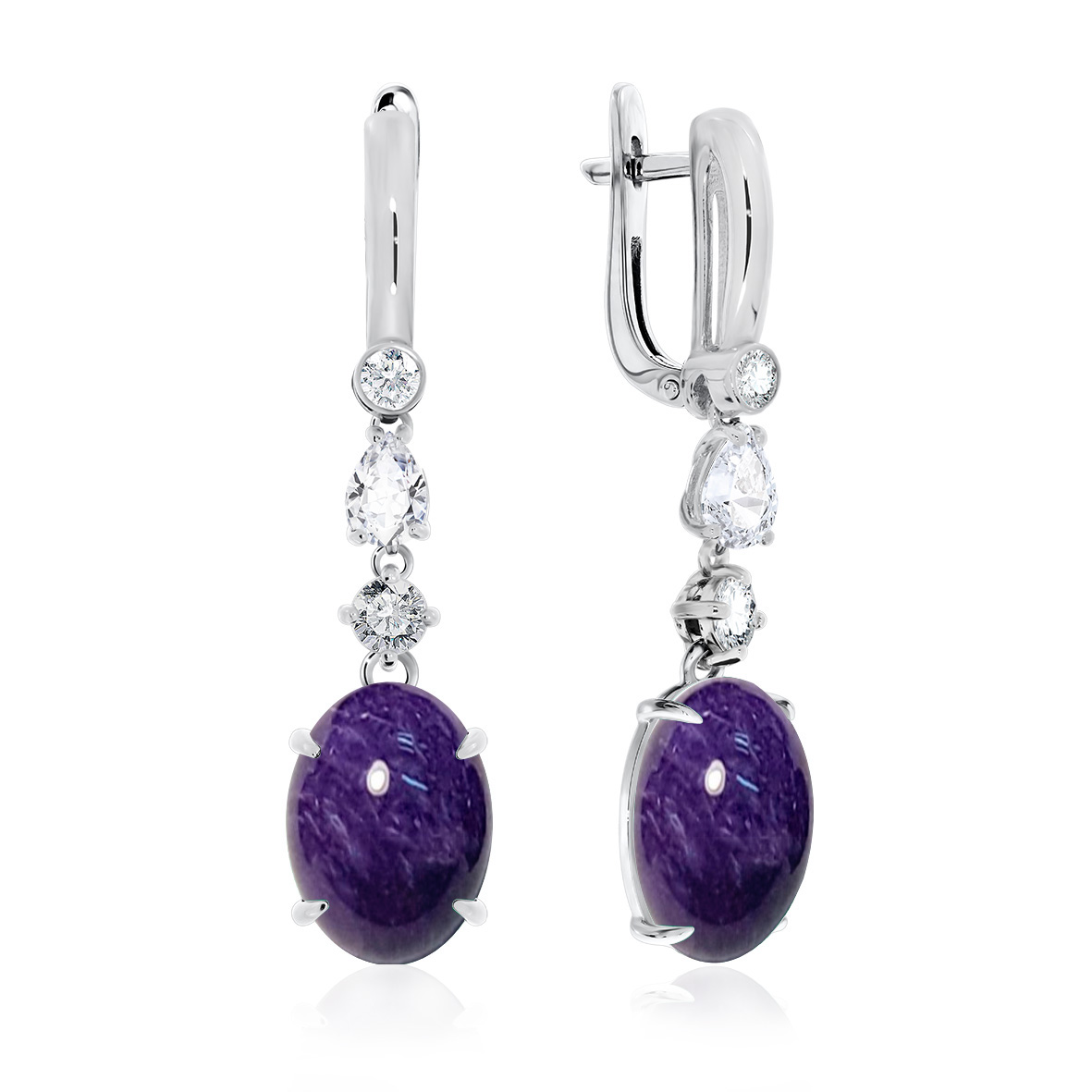 Серьги для женщин из серебра 925 пробы с чароитами,фианитами из коллекции Уральские самоцветы артикул 2340463090 от компании KRASNOE