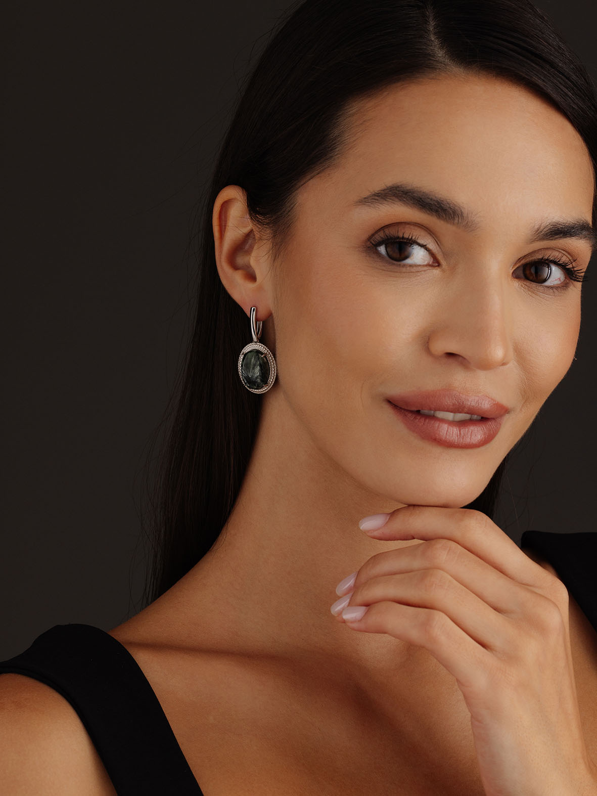 Серьги для женщин из серебра 925 пробы с серафинитами из коллекции Династия артикул 2340920963 от компании KRASNOE