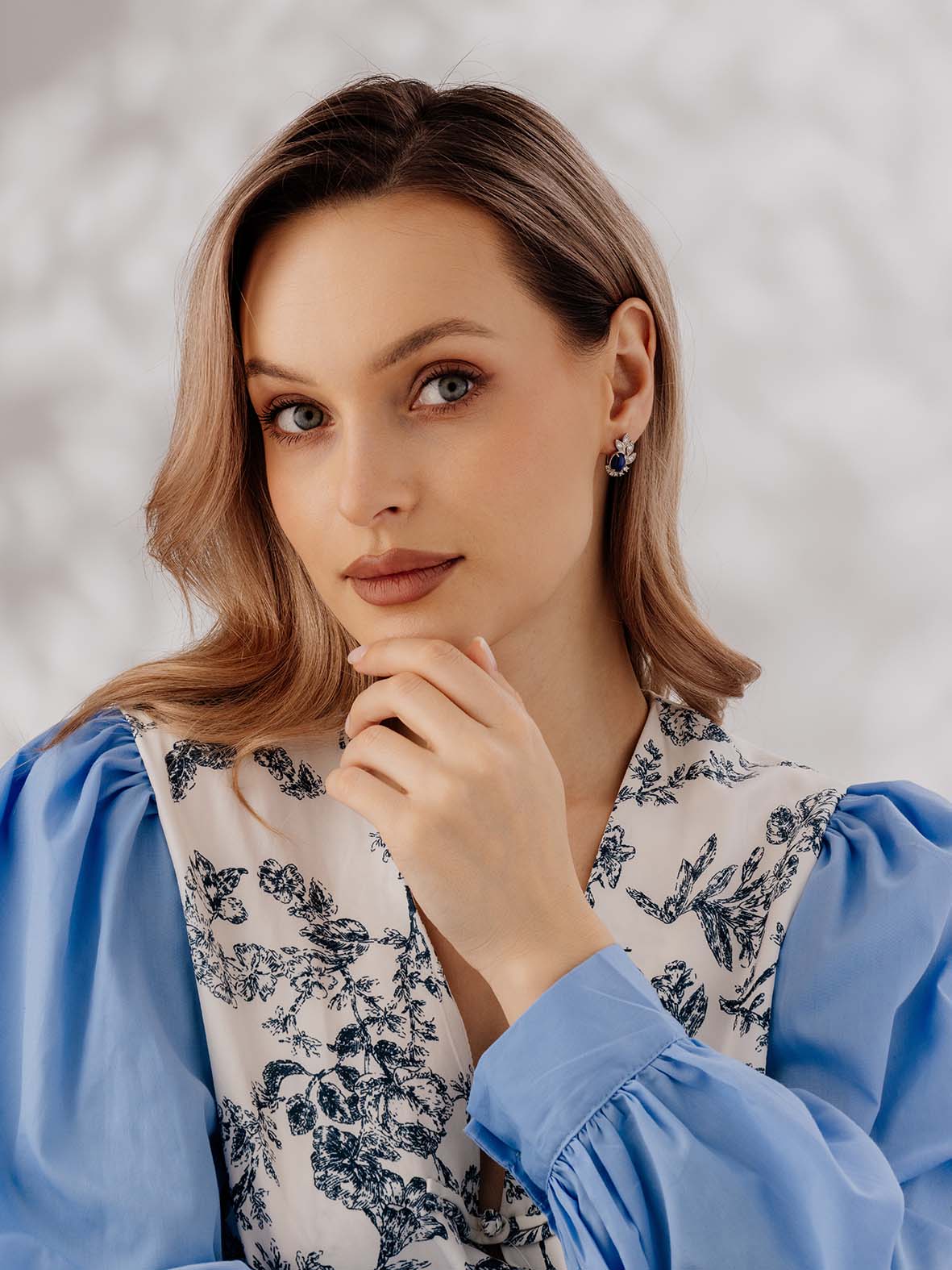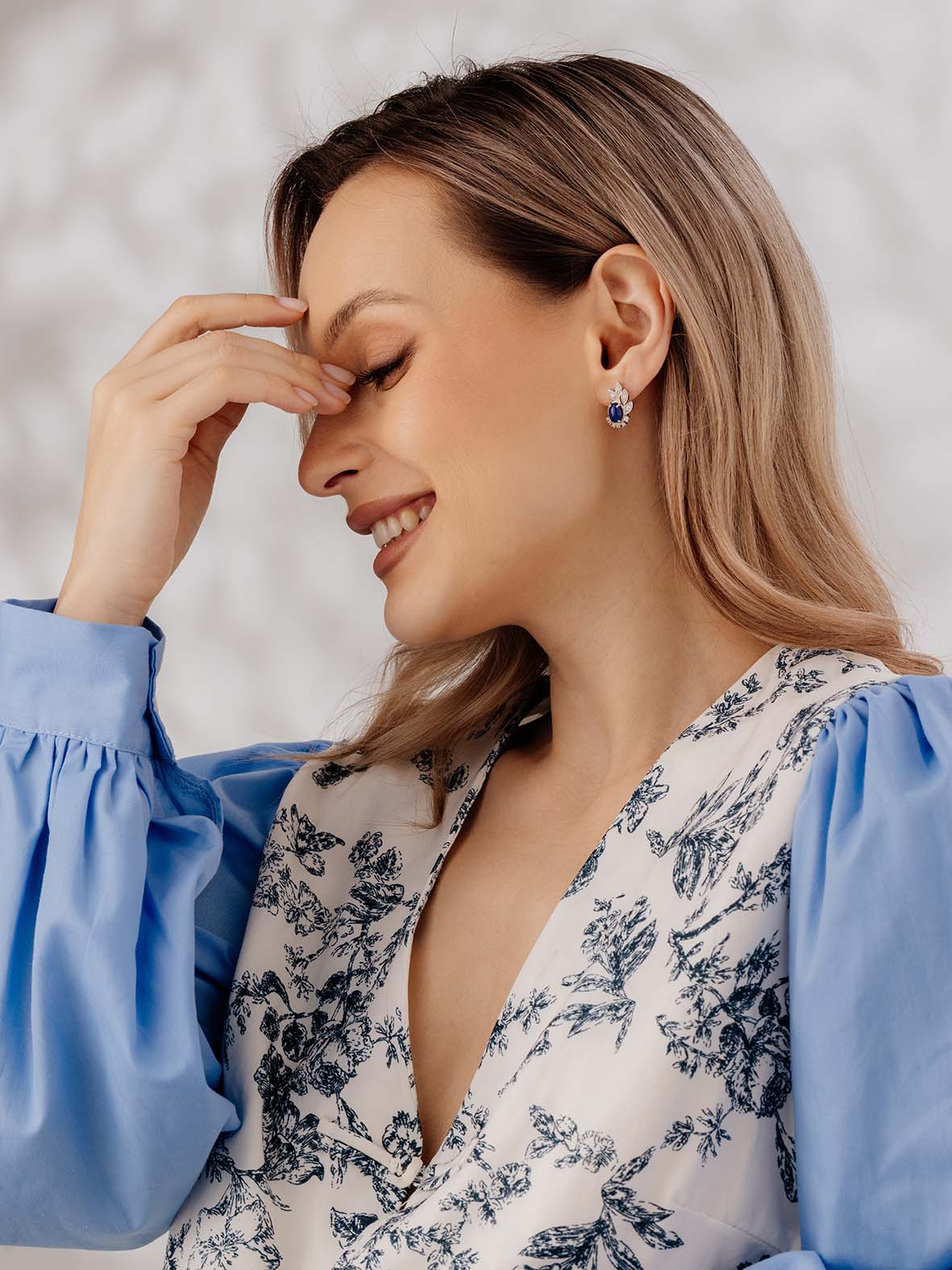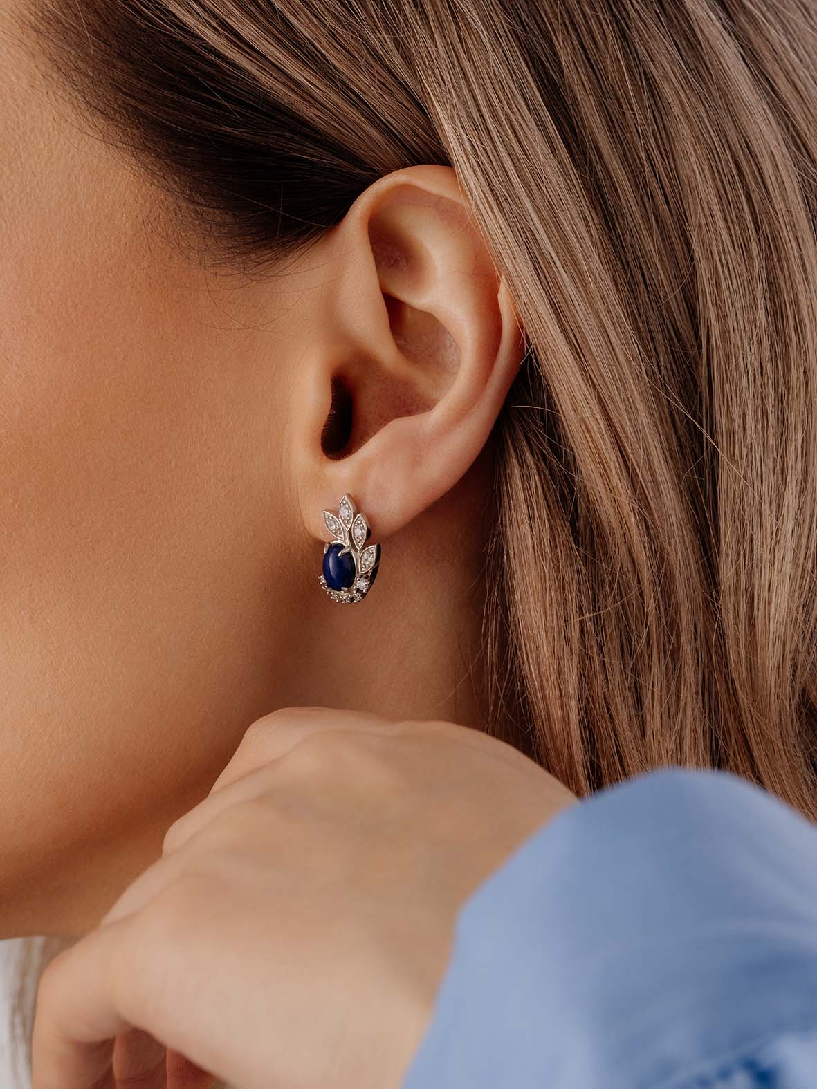 Серьги для женщин из серебра 925 пробы с сапфир звездчатыйами,фианитами из коллекции New look артикул 2340946334-8 от компании KRASNOE