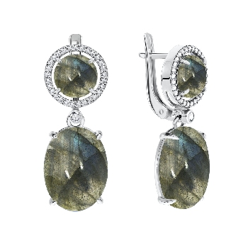 Серьги для женщин из серебра 925 пробы с лабрадоритами,фианитами из коллекции Уральские самоцветы артикул 2340Л00513л от компании KRASNOE