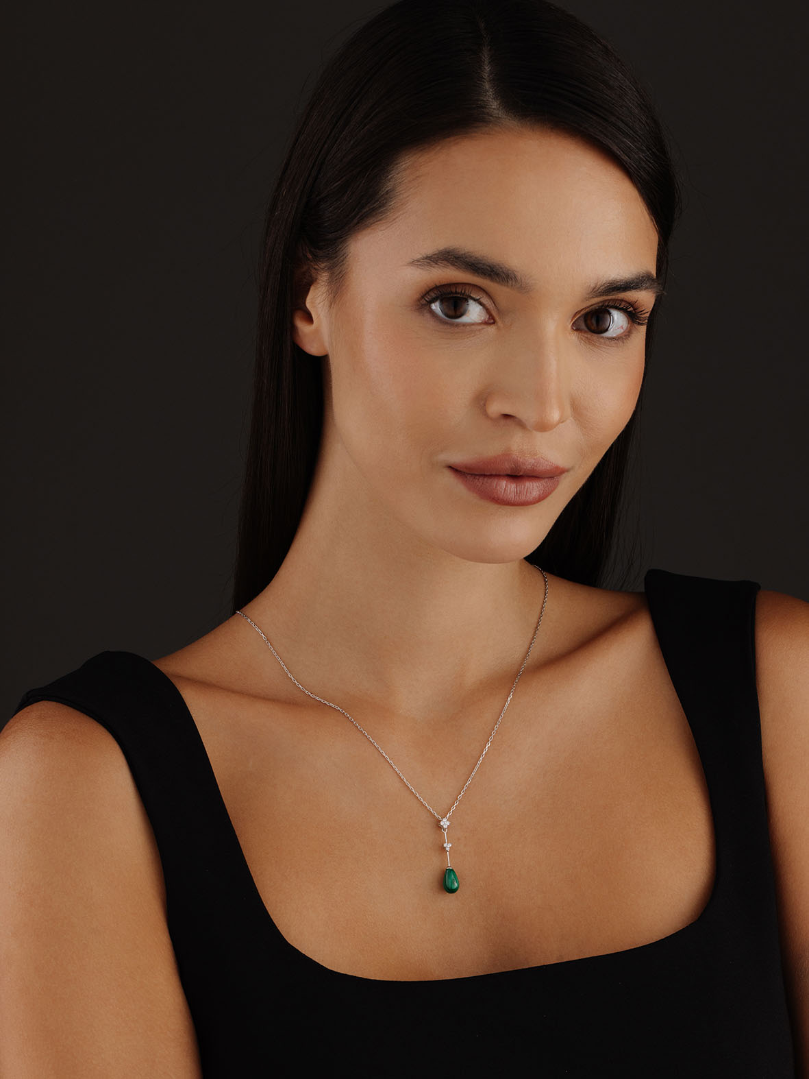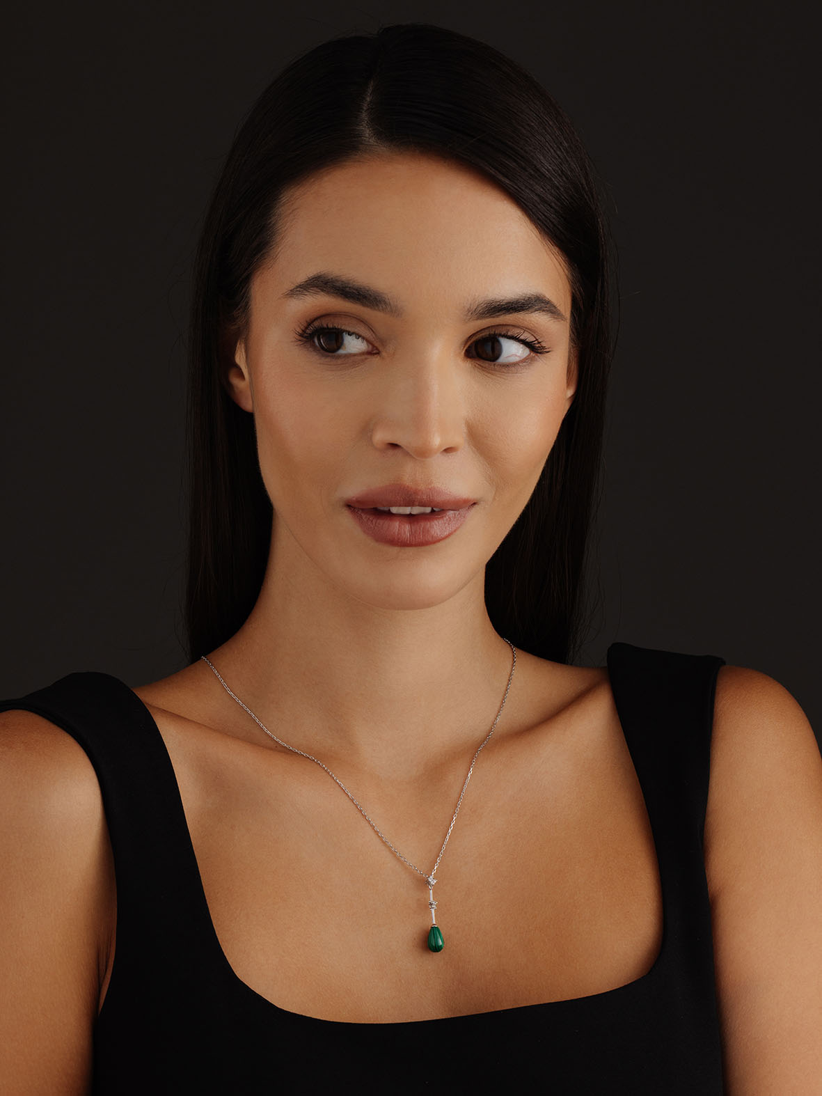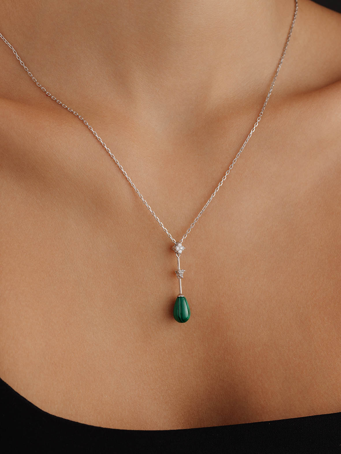Колье для женщин из серебра 925 пробы с малахитом,фианитами из коллекции Perfection артикул 8340380737-50 от компании KRASNOE