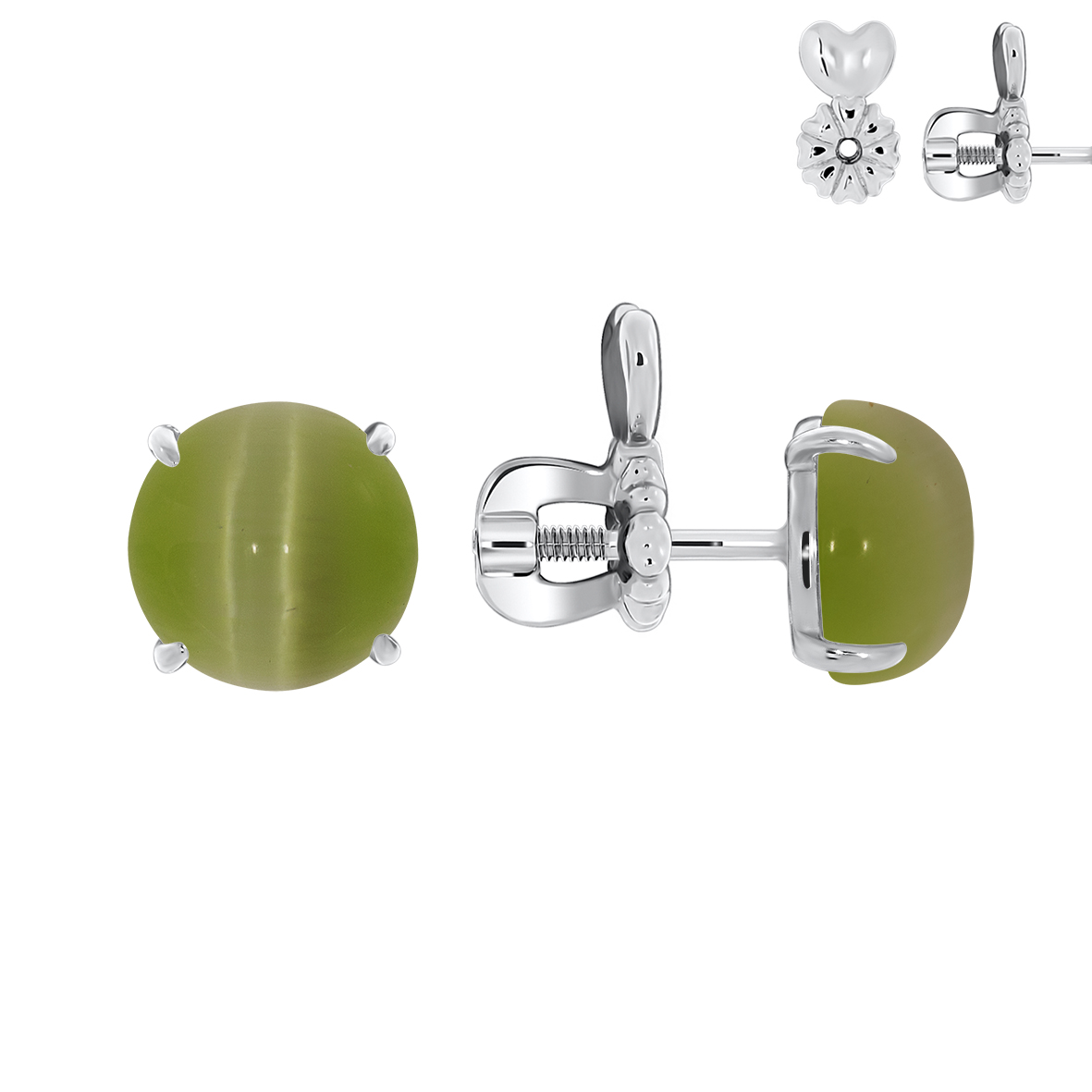 Пусеты для женщин из серебра 925 пробы с кошачий глазами из коллекции Уральские самоцветы артикул П340262680-57 от компании KRASNOE
