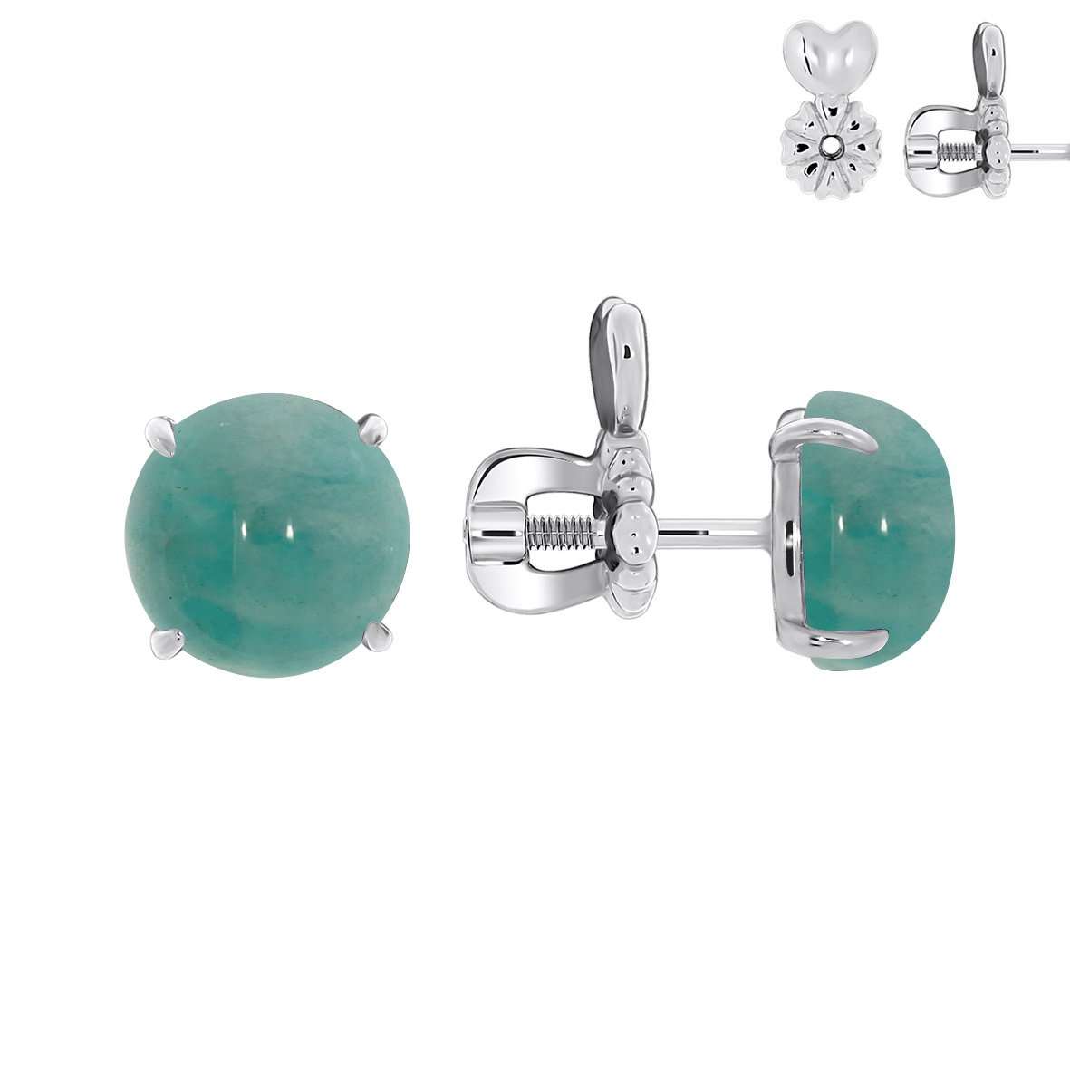 Пусеты для женщин из серебра 925 пробы с амазонитами из коллекции Уральские самоцветы артикул П340372680 от компании KRASNOE
