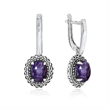 Серьги для женщин из серебра 925 пробы с чароитами из коллекции Infinity Collection артикул 2310462114 от компании KRASNOE