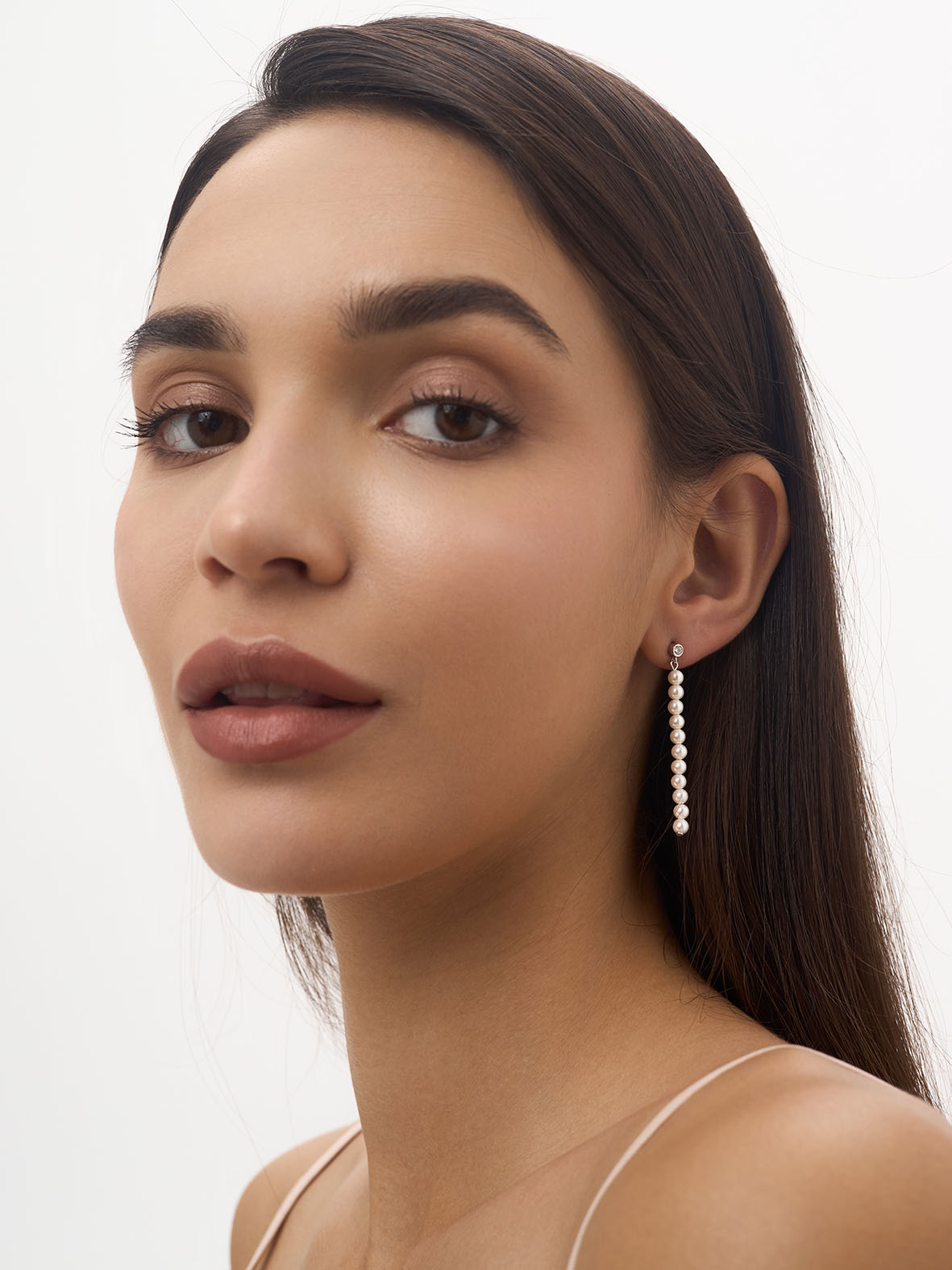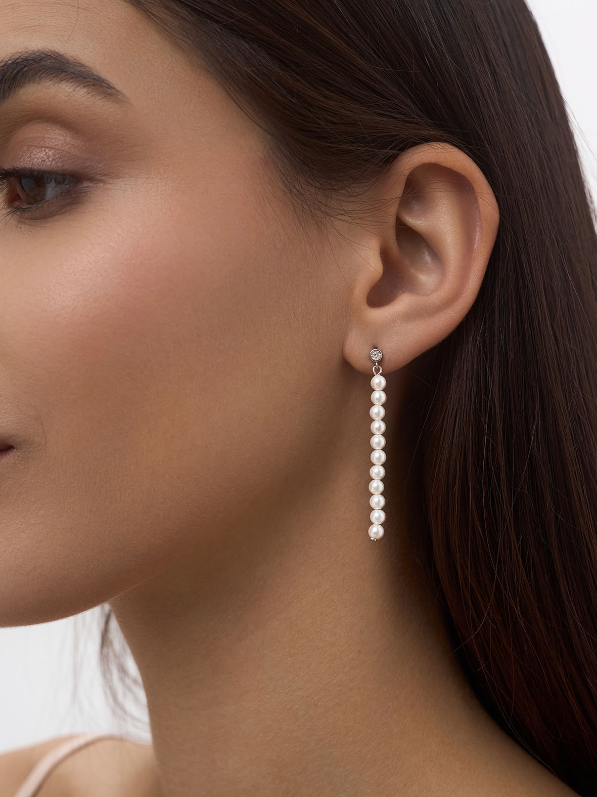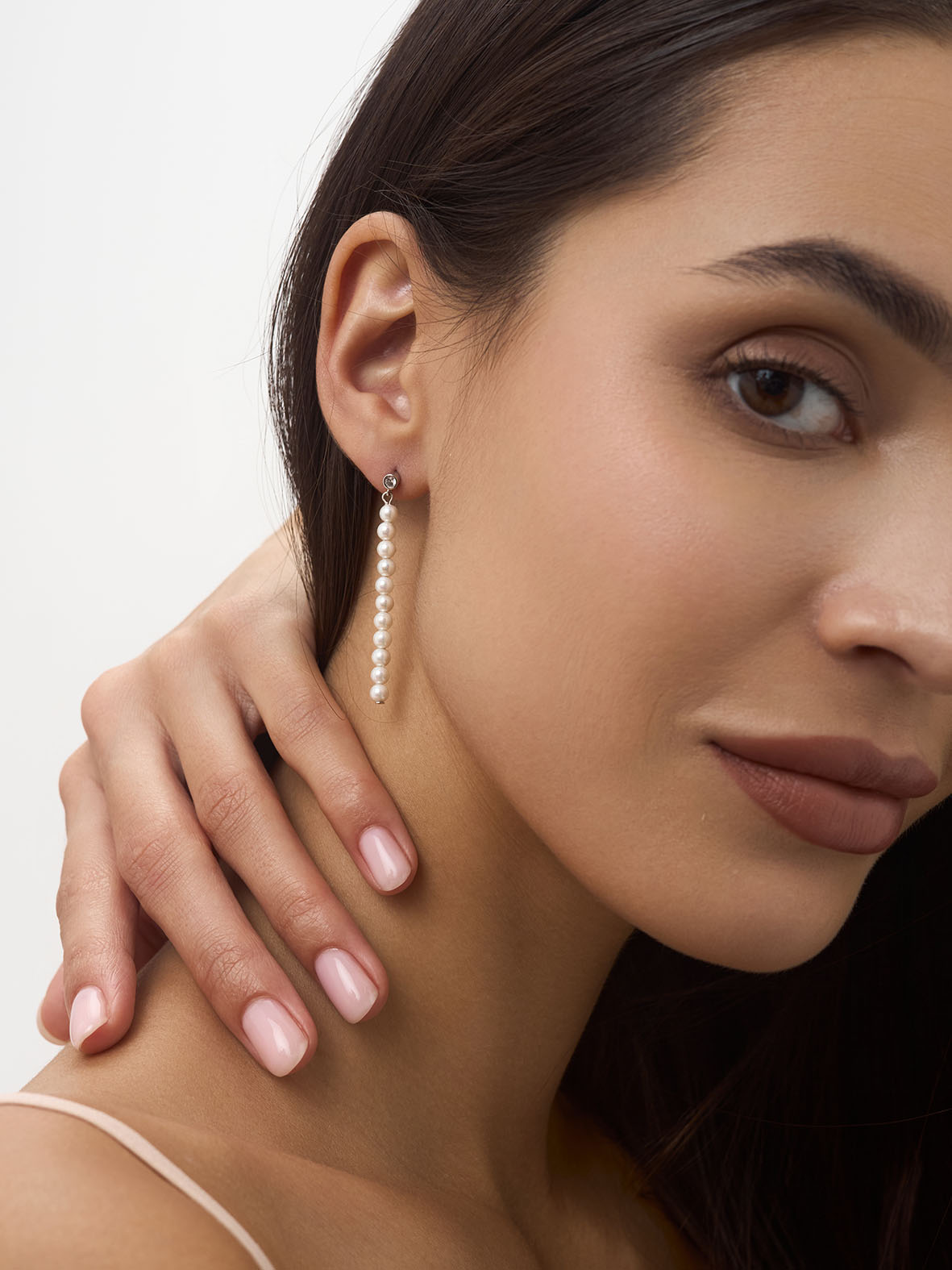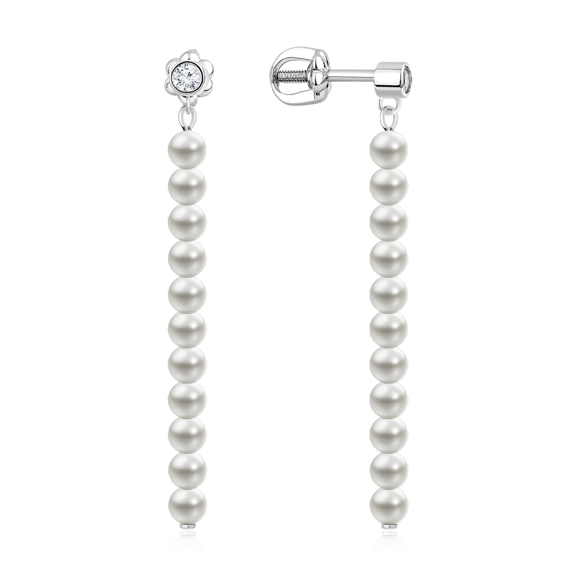 Пусеты для женщин из серебра 925 пробы с фианитами,жемчугами из коллекции Шанель артикул 2340245315 от компании KRASNOE