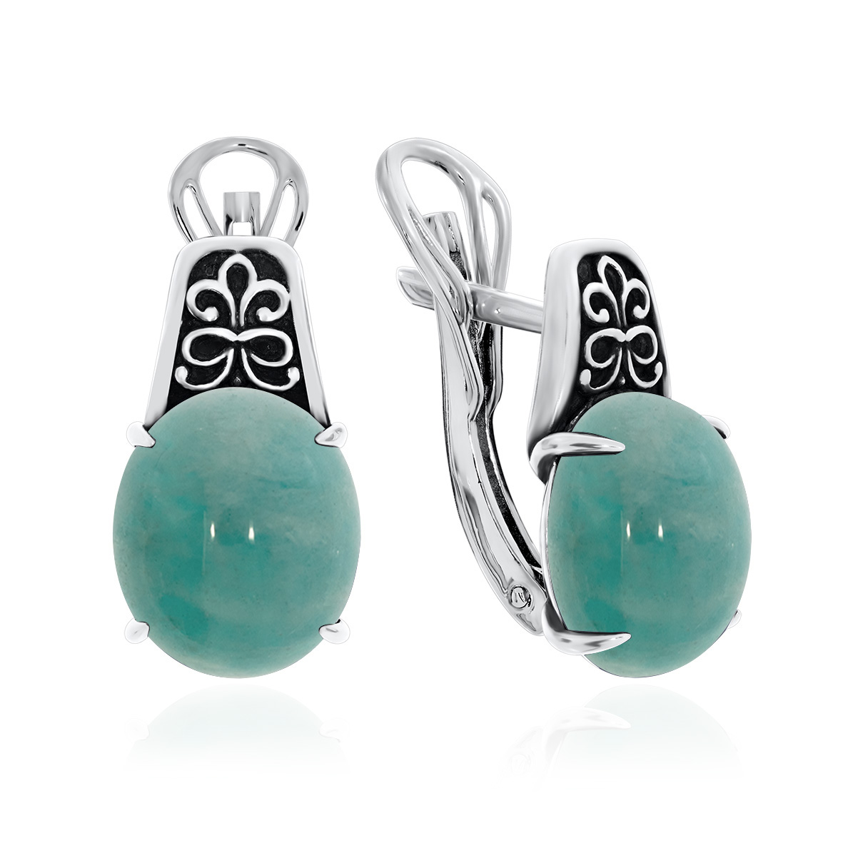 Серьги для женщин из серебра 925 пробы с амазонитами из коллекции Династия артикул 2310370993 от компании KRASNOE