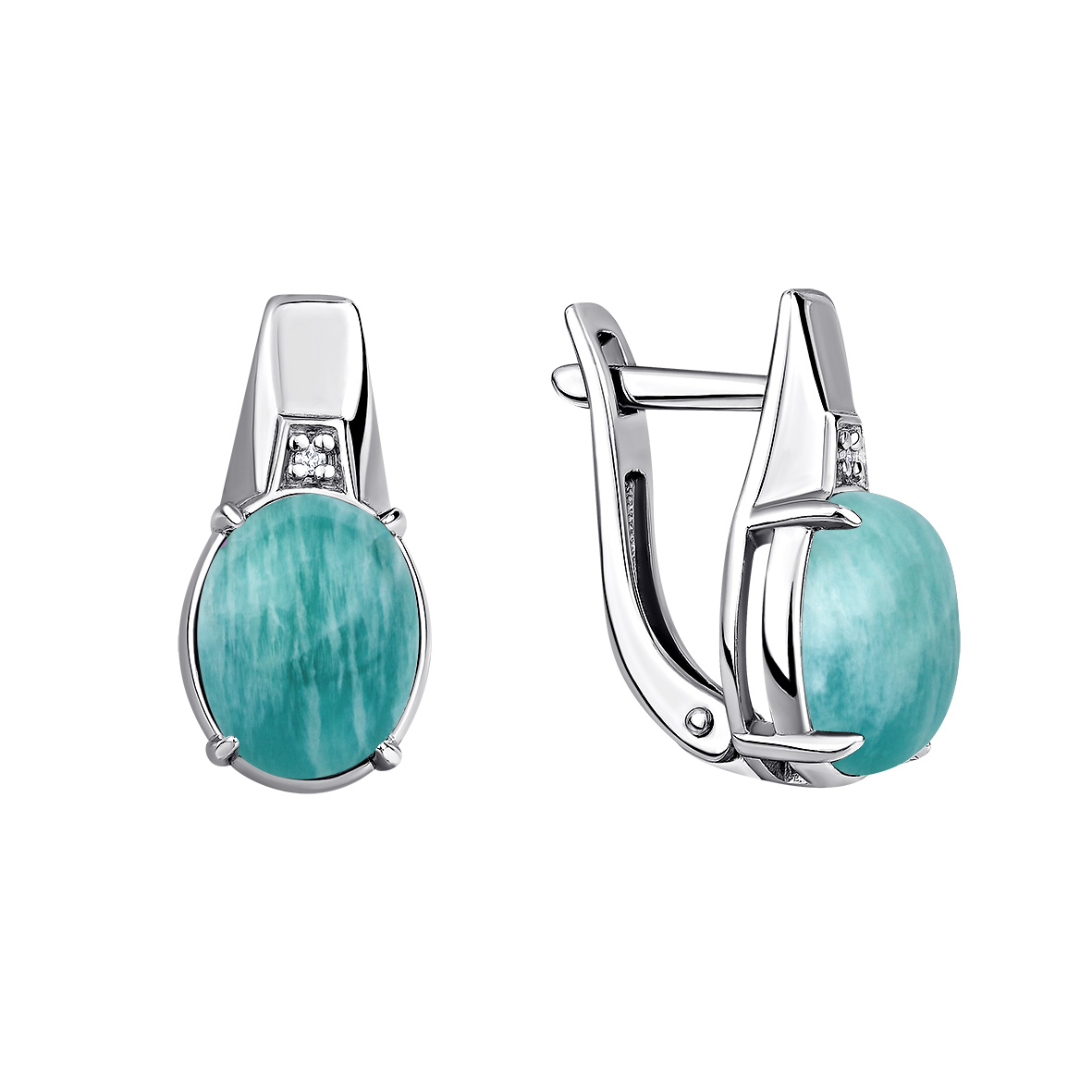 Серьги для женщин из серебра 925 пробы с фианитами,амазонитами артикул 2340371973 от компании KRASNOE