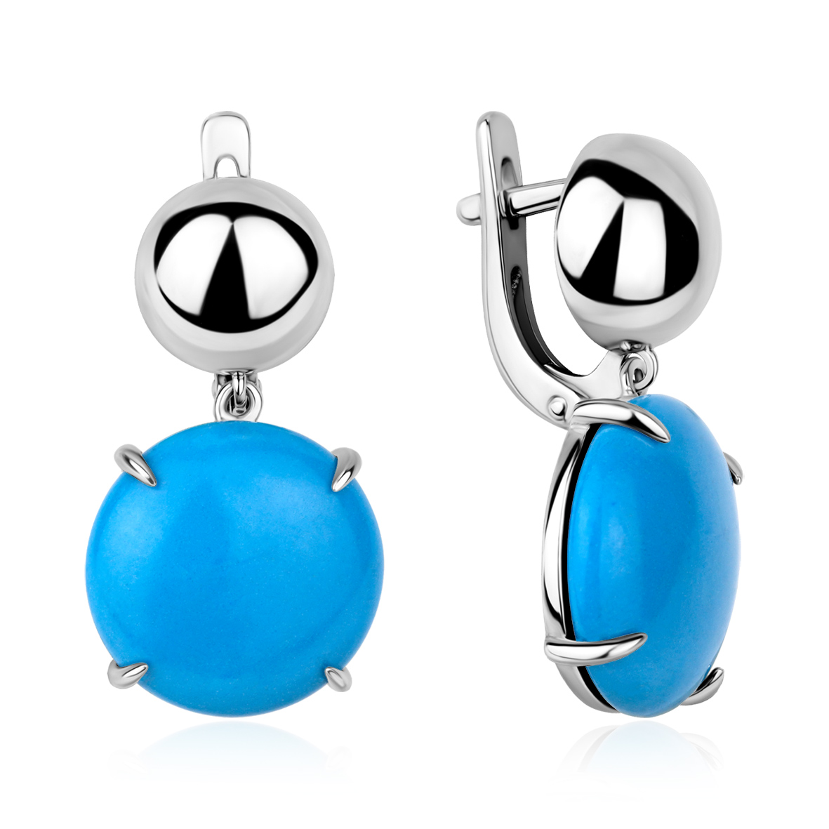 Серьги для женщин из серебра 925 пробы с бирюзой из коллекции Уральские самоцветы артикул 2340Б26365 от компании KRASNOE