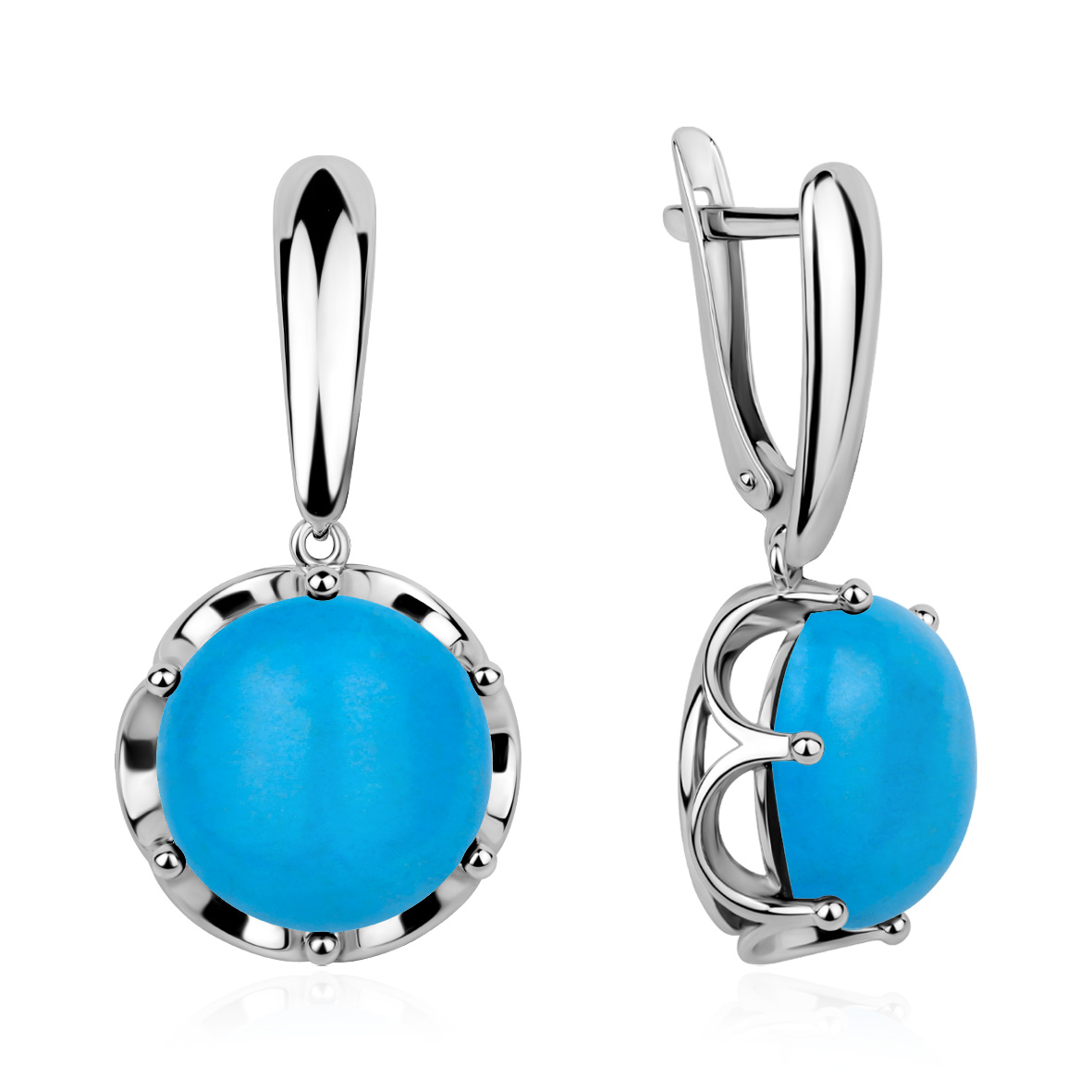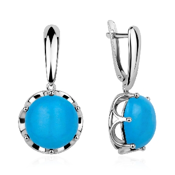 Серьги для женщин из серебра 925 пробы с бирюзой из коллекции Уральские самоцветы артикул 2340Б26402-1 от компании KRASNOE