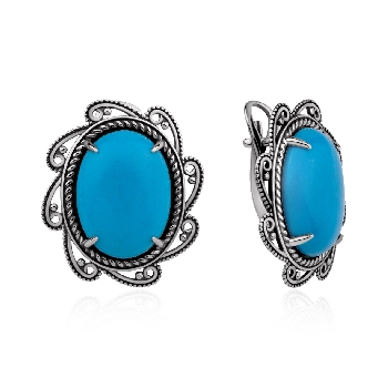 Серьги для женщин из серебра 925 пробы с бирюзой из коллекции Филигранная артикул 2310Б26397 от компании KRASNOE