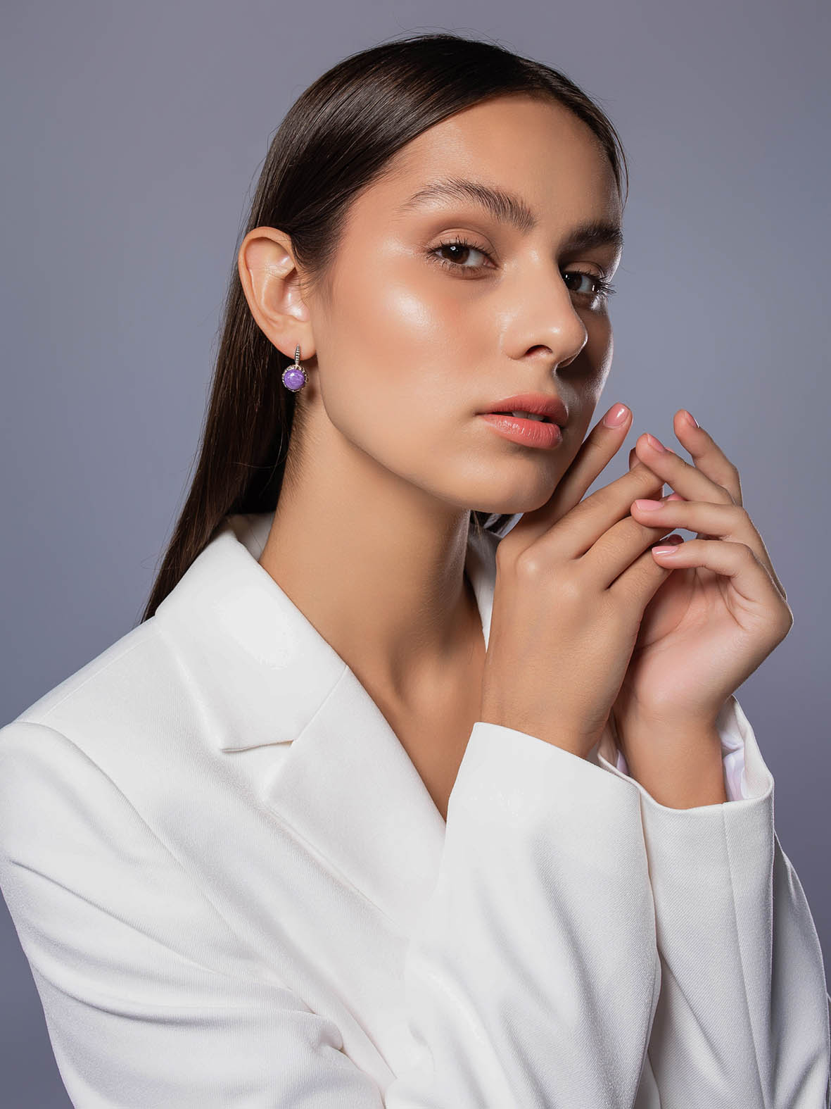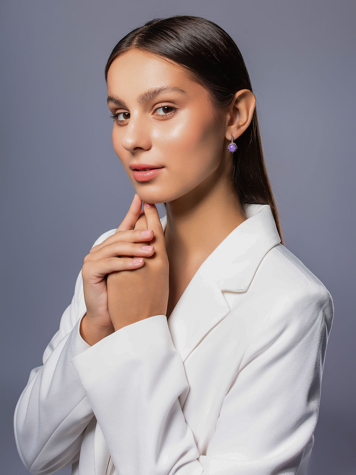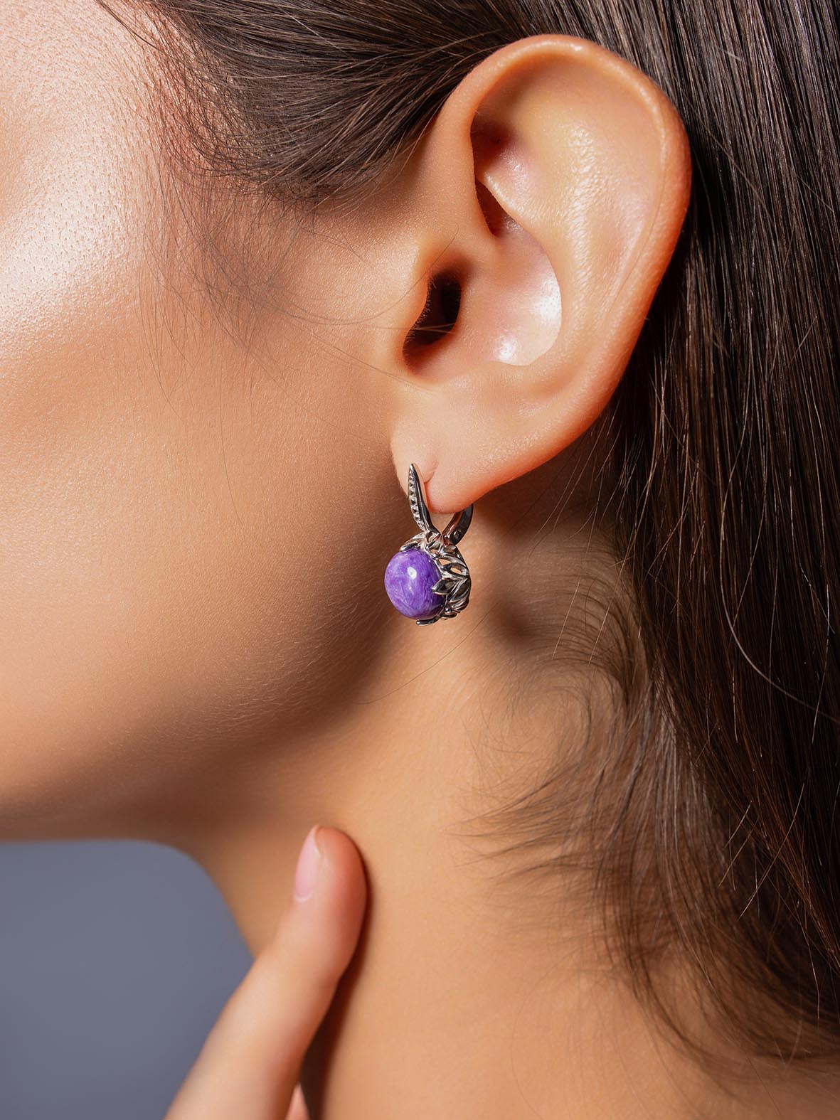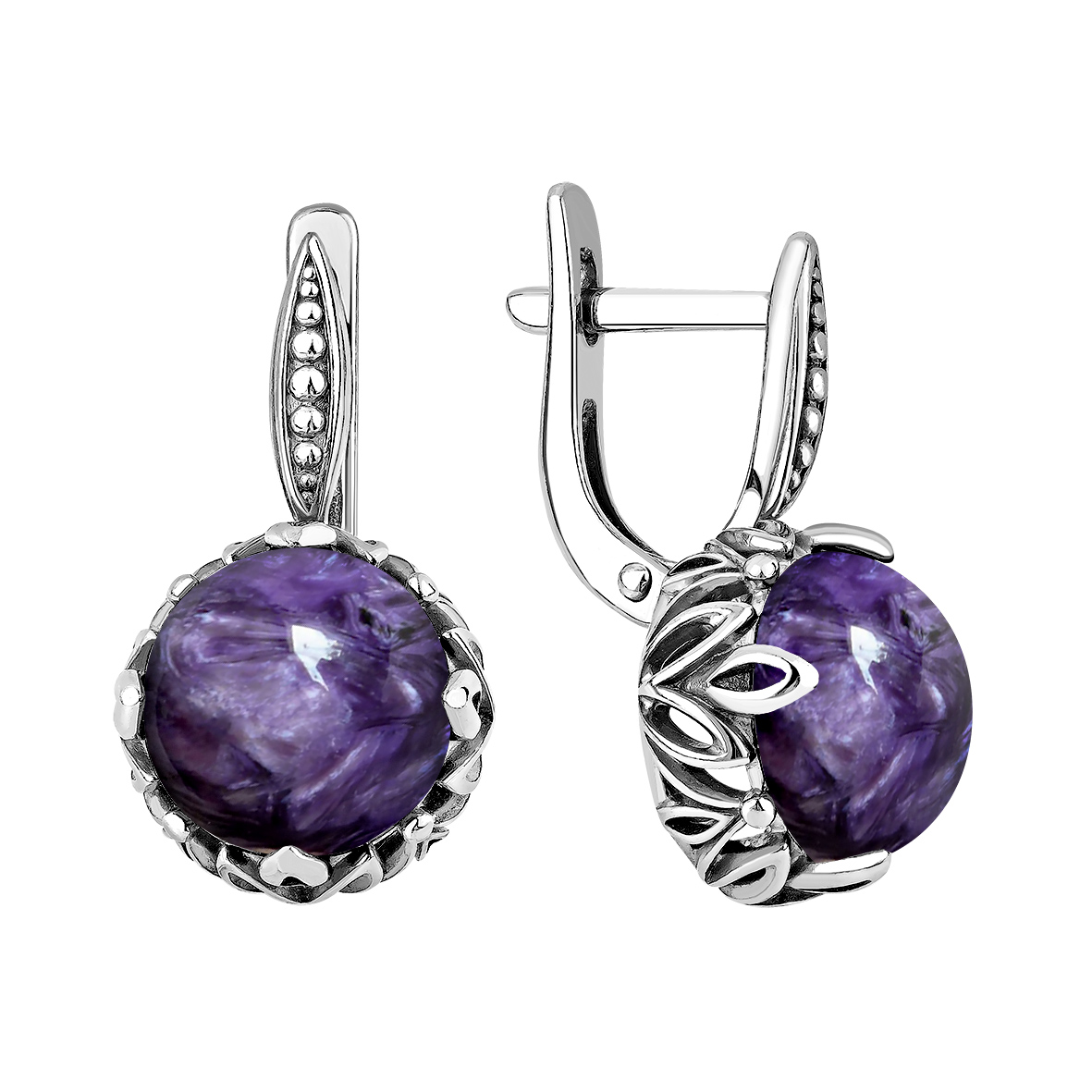 Серьги для женщин из серебра 925 пробы с чароитами из коллекции Уральские самоцветы артикул 2340465174 от компании KRASNOE