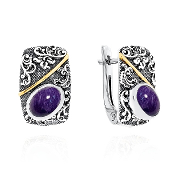 Серьги для женщин из серебра 925 пробы с чароитами из коллекции Boyarynia артикул 2317461367 от компании KRASNOE