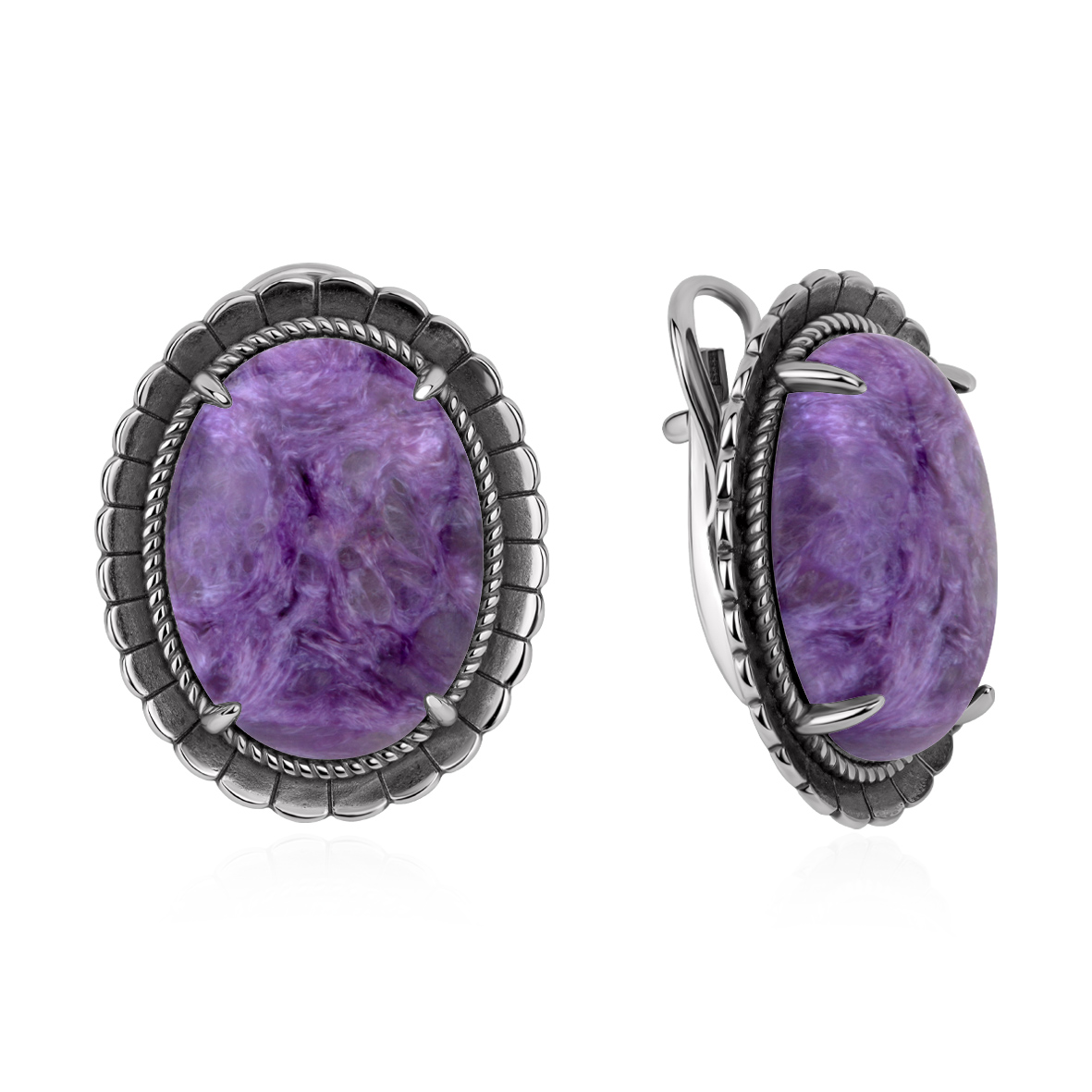 Серьги для женщин из серебра 925 пробы с чароитами из коллекции Уральские самоцветы артикул 2310466361 от компании KRASNOE