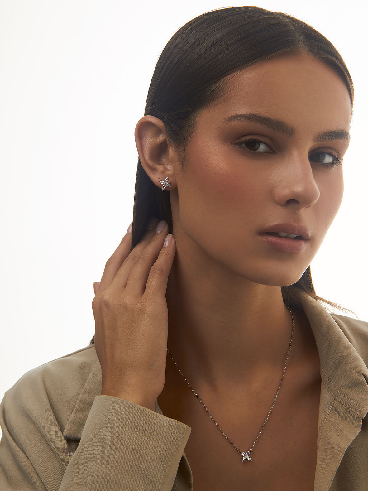 Пусеты для женщин из серебра 925 пробы с фианитами из коллекции Enigma артикул 2340205421 от компании KRASNOE