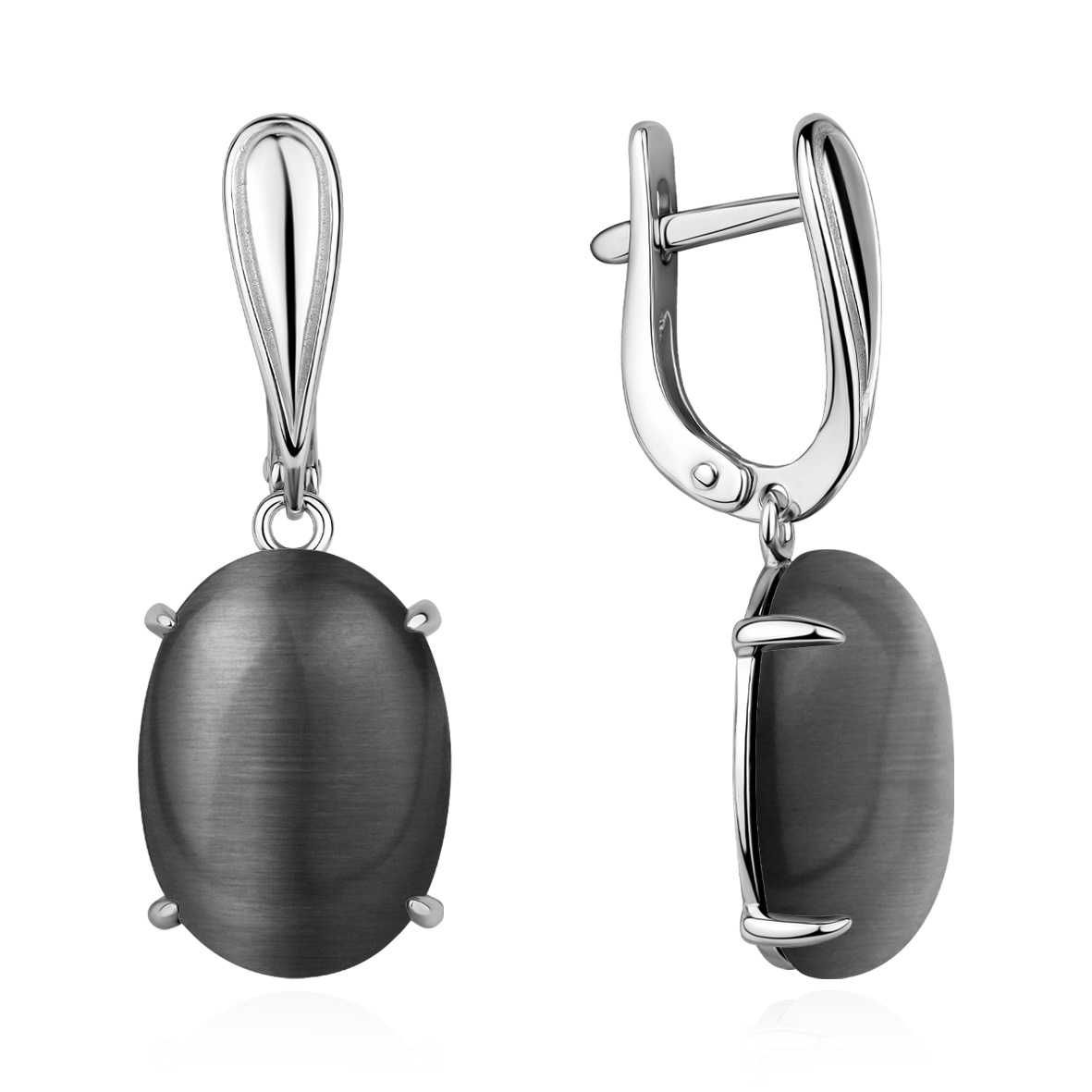 Серьги для женщин из серебра 925 пробы с кошачий глазами из коллекции Уральские самоцветы артикул 2340265893-21 от компании KRASNOE