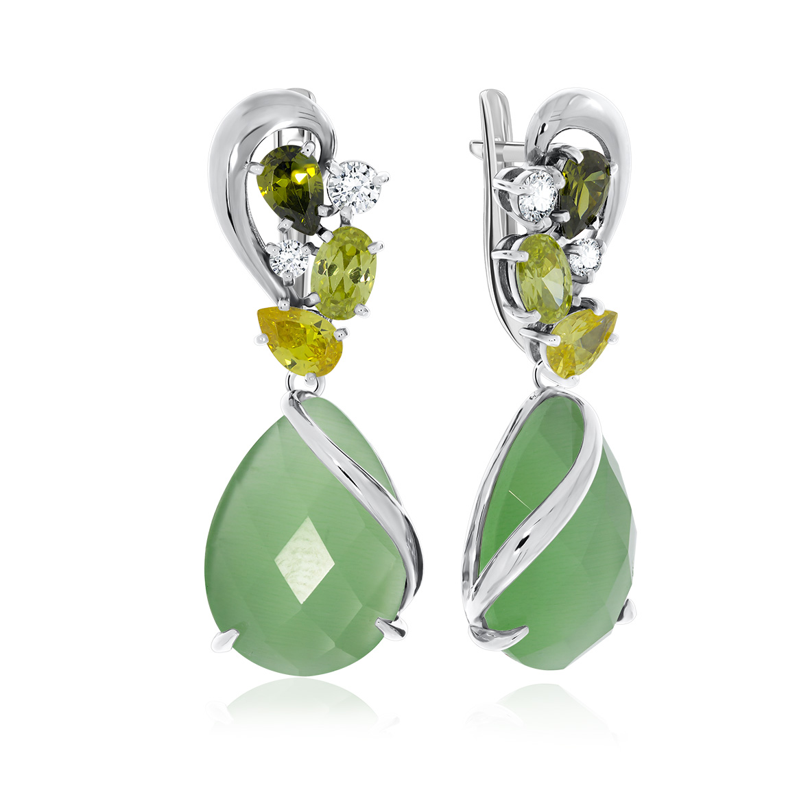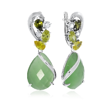 Серьги для женщин из серебра 925 пробы с кошачий глазами,фианитами из коллекции Уральские самоцветы артикул 2340260877-60 от компании KRASNOE