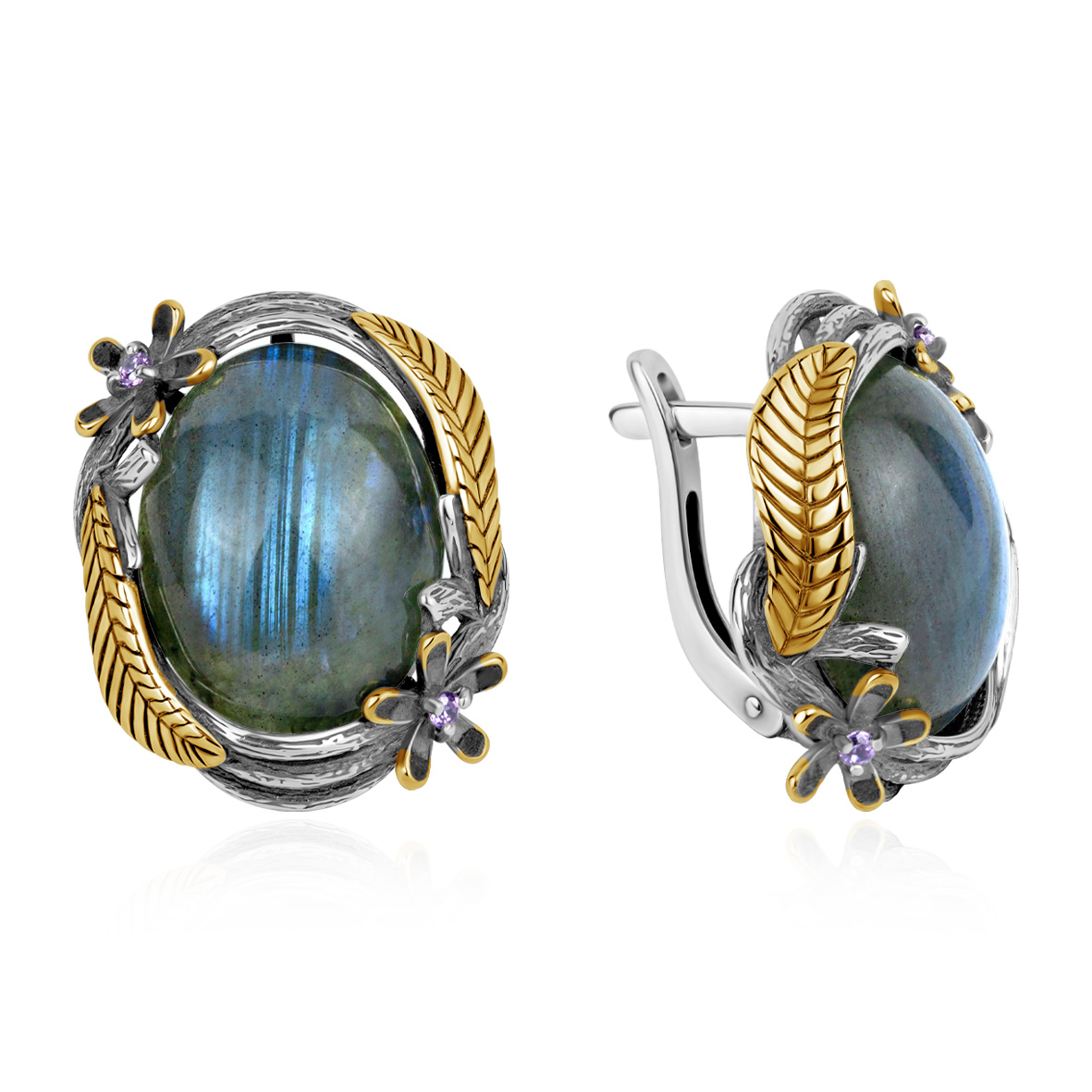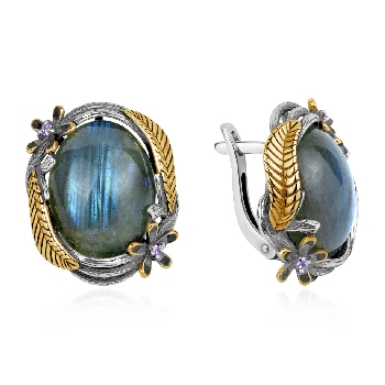 Серьги для женщин из серебра 925 пробы с лабрадоритами,фианитами из коллекции Flowers артикул 2317Л05330 от компании KRASNOE
