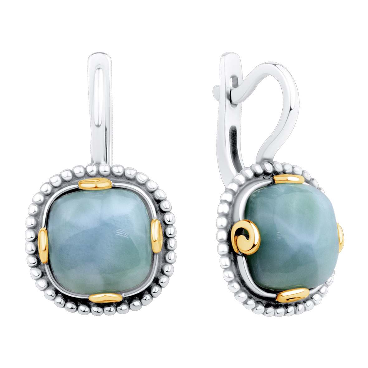 Серьги для женщин из серебра 925 пробы с ларимарами из коллекции Уральские самоцветы артикул 2317Л15801 от компании KRASNOE