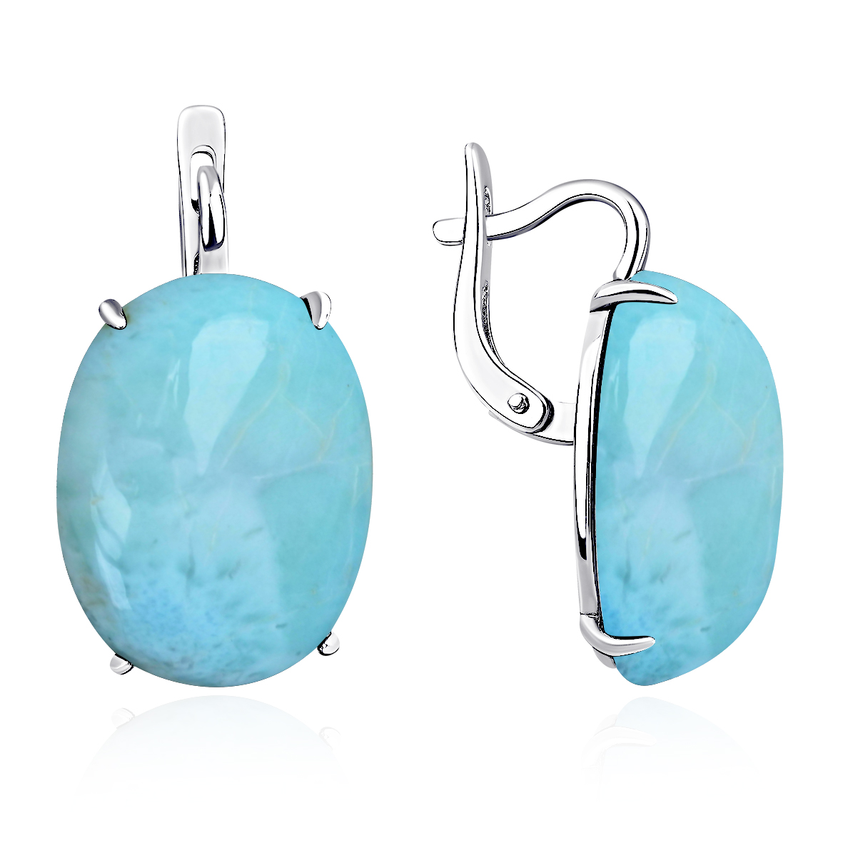 Серьги для женщин из серебра 925 пробы с ларимарами из коллекции Уральские самоцветы артикул 2340Л15043 от компании KRASNOE